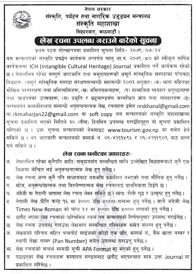 लेख रचना उपलब्ध गराउने सम्बन्धी सूचना |