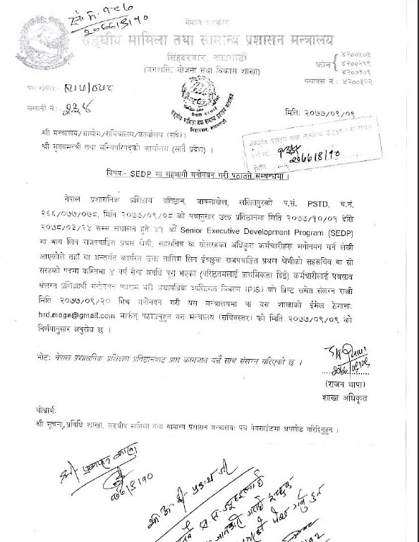 SEDP मा सहभागी मनोनयन गरी पठाउने सम्बन्धमा ।