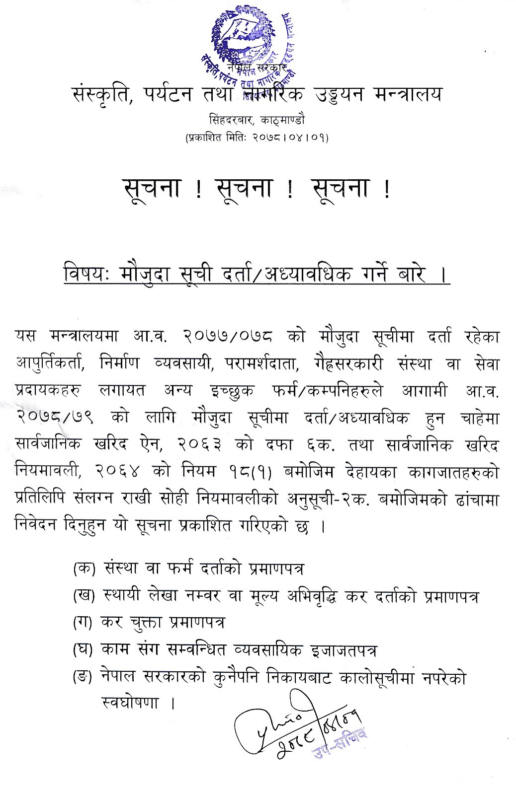 सिलबन्दी दरभाउपत्र स्वीकृत गर्ने आशय सम्बन्धी सूचना !