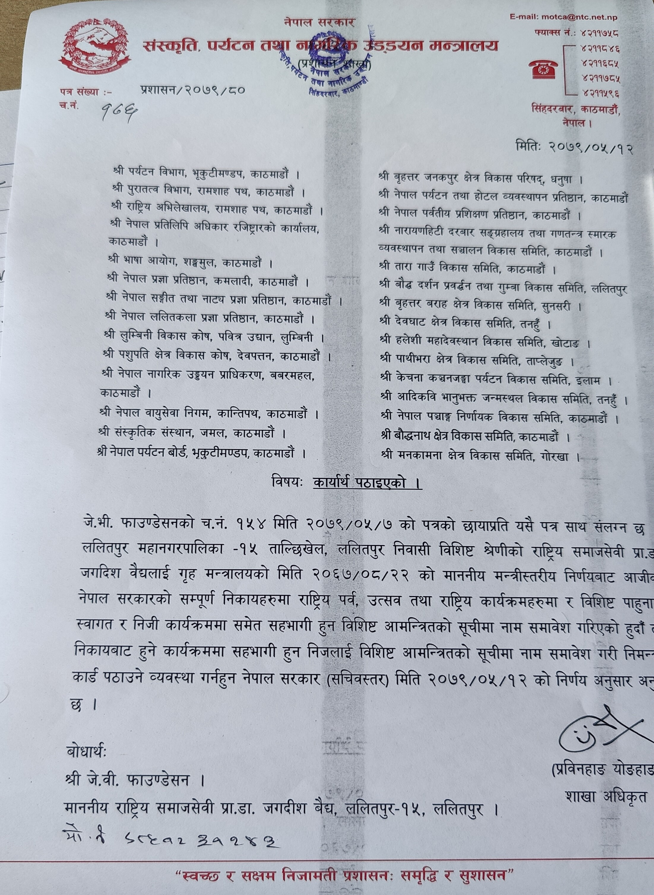 ४६ औं विश्व पर्यटन दिवसको अवसरमा श्रीमान् सचिवज्यूको शुभकामना सन्देश !!