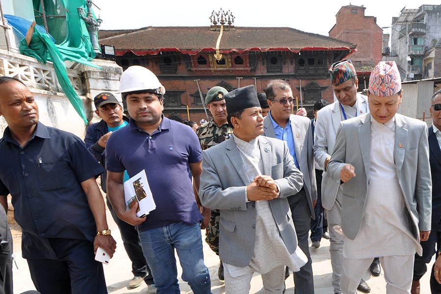 मा. संस्कृति, पर्यटन तथा नागरिक उड्डयन मन्त्री ज्यूबाट सम्पदाको पुन निर्माण कार्यको निरिक्षण