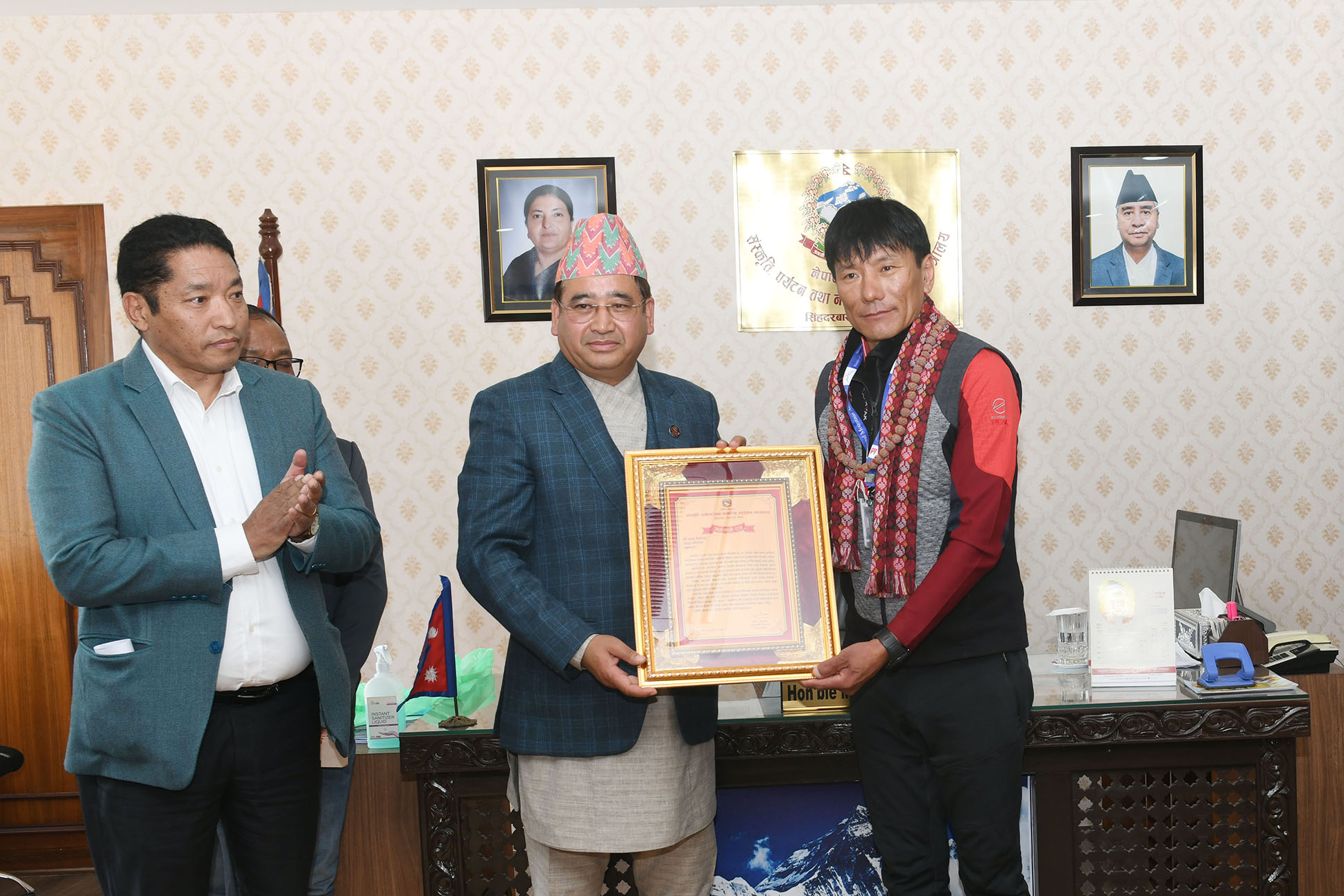 संस्कृति, पर्यटन तथा नागरिक उड्डयन मन्त्रालयबाट ८ हजार मिटर भन्दा अग्ला विश्वका १४ वटा हिमाल दोहोर्याएर आरोहण गर्ने विश्वको प्रथम आरोही श्री सानु शेर्पाज्यूलार्इ गरिएको सम्मान कार्यक्रमका तस्वीरहरु(२०७९-०९-०६)