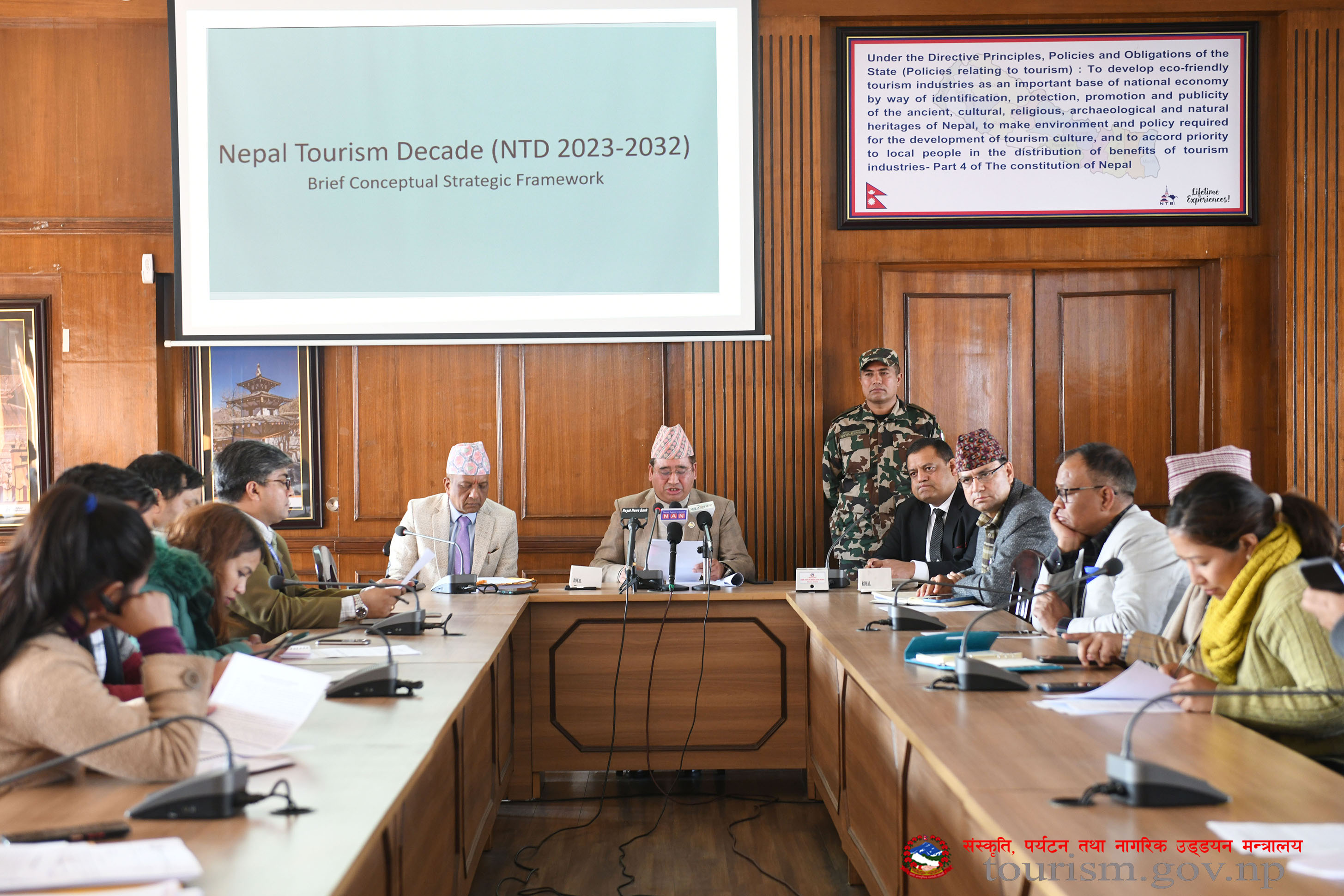 Nepal Tourism Decade 2023-2032 Brief Conceptual Strategic Frame Work को मा. मन्त्रीज्यूबाट पत्रकार सम्मेलन मार्फत सार्वजनिक गर्दाका तस्वीरहरु(२०७९-०९-०८)