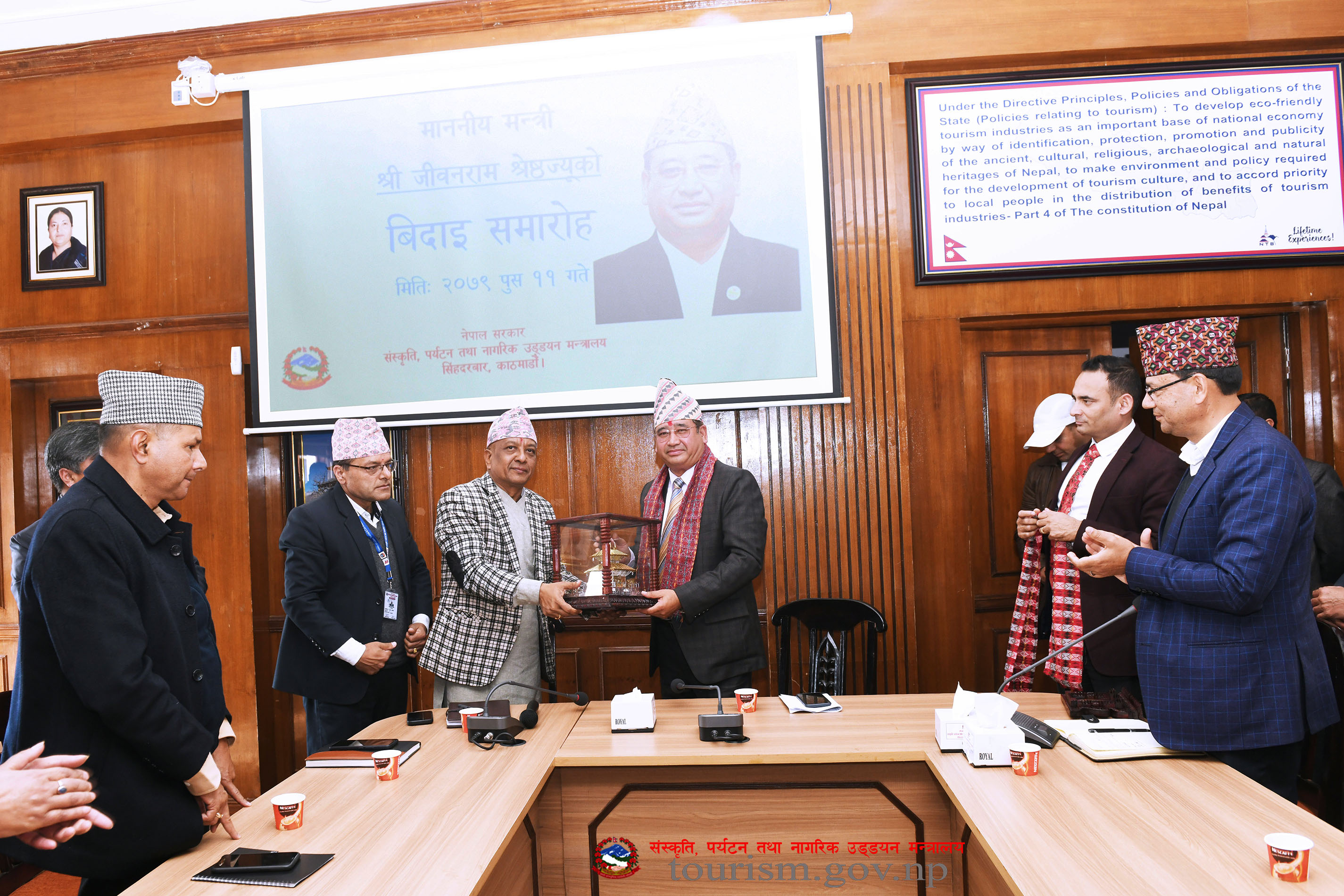 संस्कृति, पर्यटन तथा नागरिक उड्डयन मन्त्री माननीय श्री जीवनराम श्रेष्ठज्यूको विदार्इ समारोहका तस्वीरहरु (२०७९-०९-११)