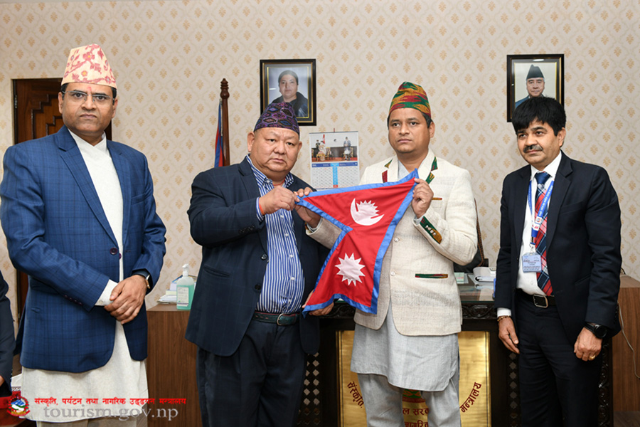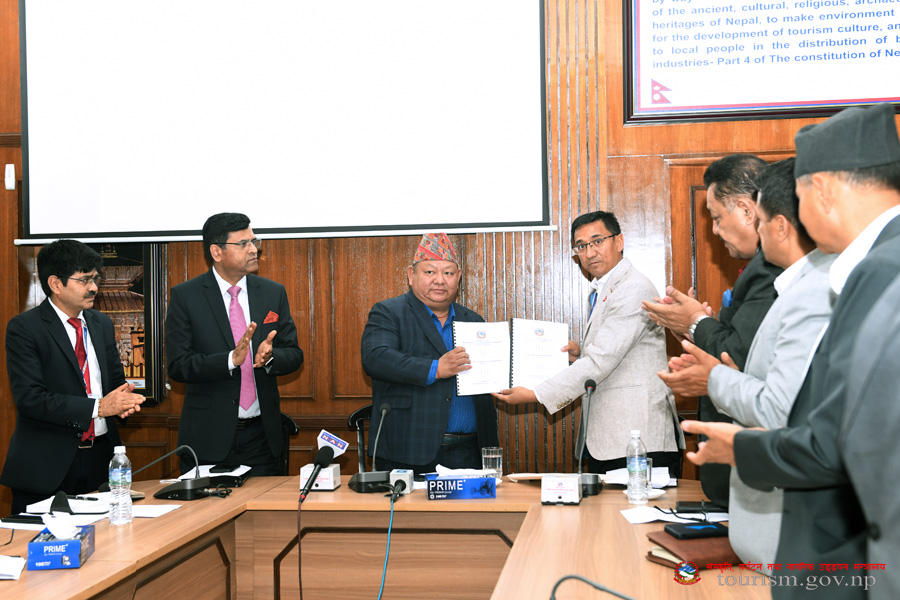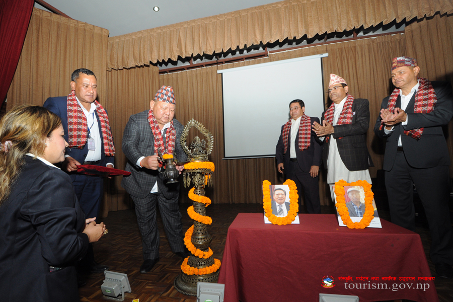 संस्कृति, पर्यटन तथा नागरिक उड्डयन मन्त्री माननीय प्रेम बहादुर आलेज्यू समक्ष पर्यटन क्षेत्र पुनरुत्थान प्राविधिक समितिको प्रतिवेदन हस्तान्तरण कार्यक्रमका तस्वीरहरु(२०७९-०१-१६)