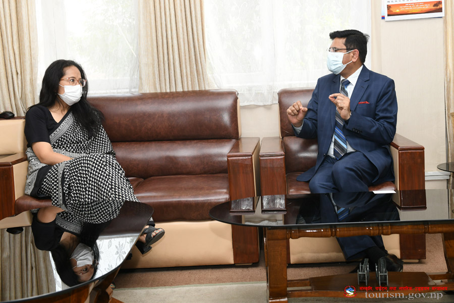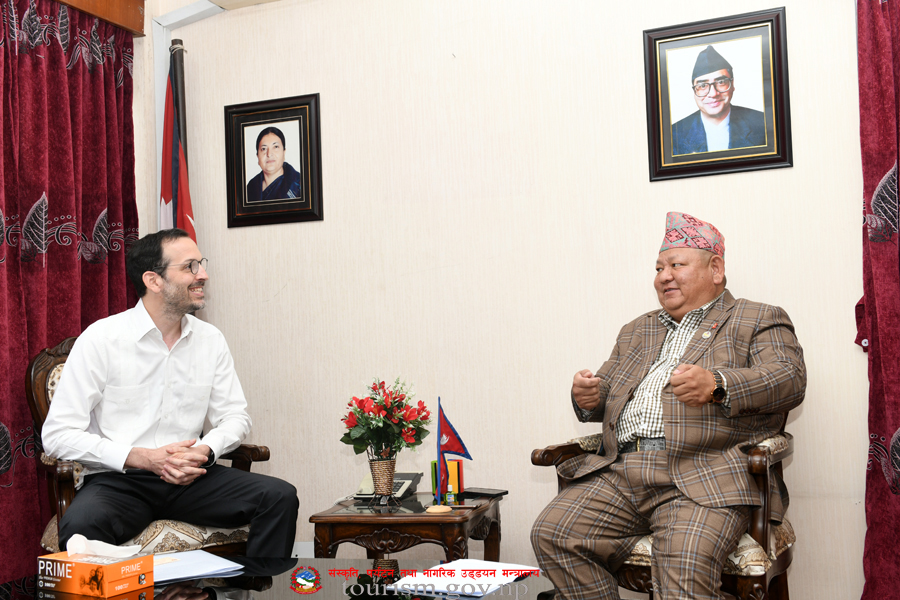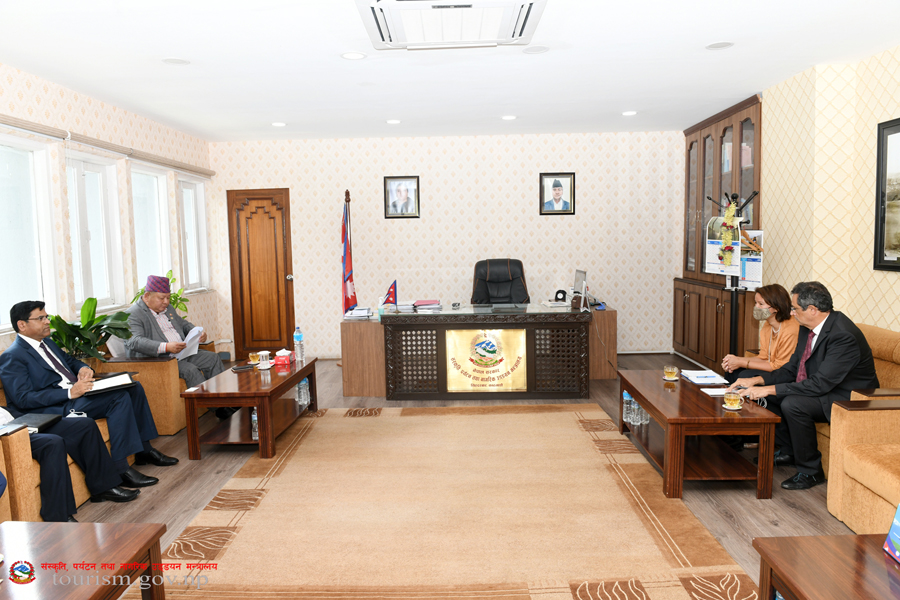 संस्कृति, पर्यटन तथा नागरिक उड्डयन मन्त्री माननीय प्रेम बहादुर आलेज्यूसँग नेपालका लागि European Union का प्रतिनिधि मण्डल प्रमुख तथा महामहिम राजदूत Ms. Nona Deprez को शिष्टाचार भेटका तस्वीरहरु (२०७९-०२-१२)