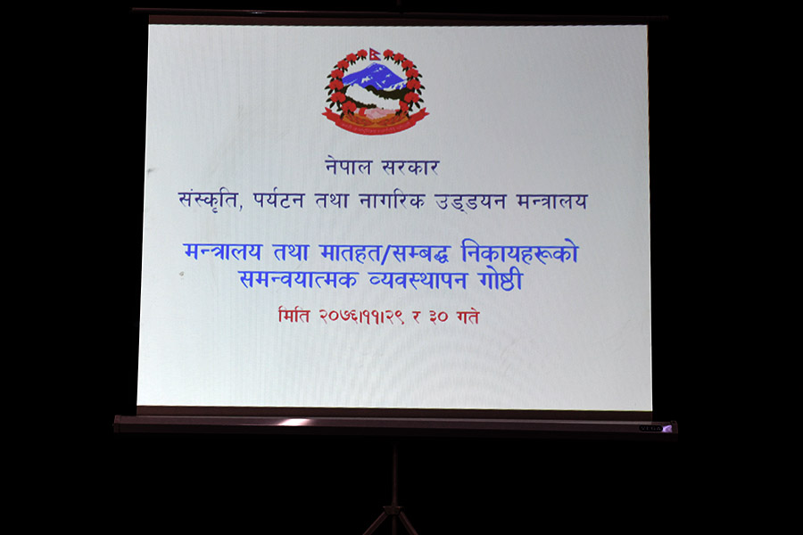 संस्कृति, पर्यटन तथा नागरिक उड्डयन मन्त्रालयबाट आयोजित दुर्इ दिने मन्त्रालय तथा मातहत/सम्बद्ध निकायहरुको समन्वयात्मक व्यवस्थापन गोष्ठी - तस्वीर(२०७६-११-३०)