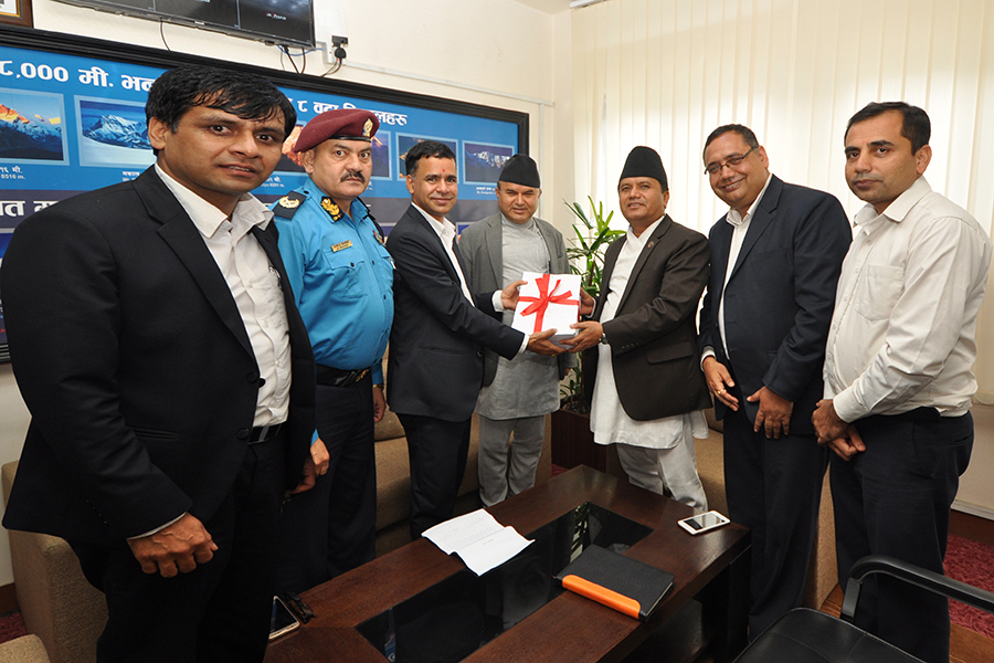 मिति २०७५।४।१४ गते, नेपालमा हुने पर्यटक उद्धार सम्बन्धी छानविन कार्यदलले माननीय मन्त्री समक्ष प्रतिवेदन बुझाएको-तस्वीर