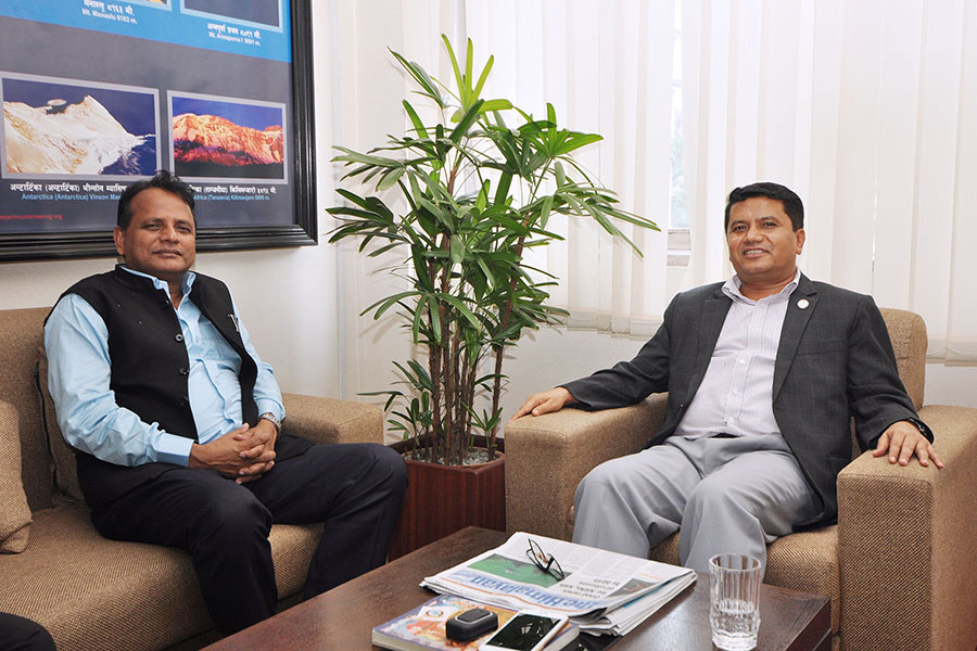 माननीय संस्कृति, पर्यटन तथा नागरिक उड्डयन मन्त्री श्री रविन्द्र अधिकारीसँग प्रदेश नं. २ का मुख्य मन्त्री मोहम्मद लालबाबु राउतज्यूको भेट- तस्वीर