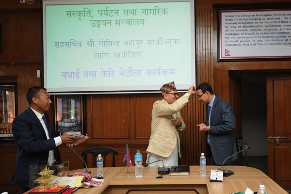 मन्त्रालयका सहसचिव श्री गोविन्द बहादुर कार्कीज्यूका लागि आयोजित बधाई तथा फेरी भेटौला कायर्क्रमका तस्वीरहरु-(२०८१-०१-०९)