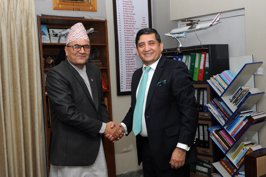 श्रीमान सचिव डा. दिपक काफ्लेज्यूसँग नेपालका लागि पाकिस्तानका राजदूत H.E. Mr. Abrar H Hashmi को शिष्टाचार भेटका तस्वीर(२०८१-०१-१३)