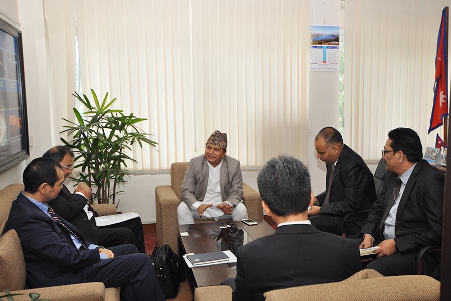 मिति २०७५।४।१८ गते, माननीय मन्त्री श्री रविन्द्र अधिकारीसँग ADB का Country Director को भेट -तस्वीर
