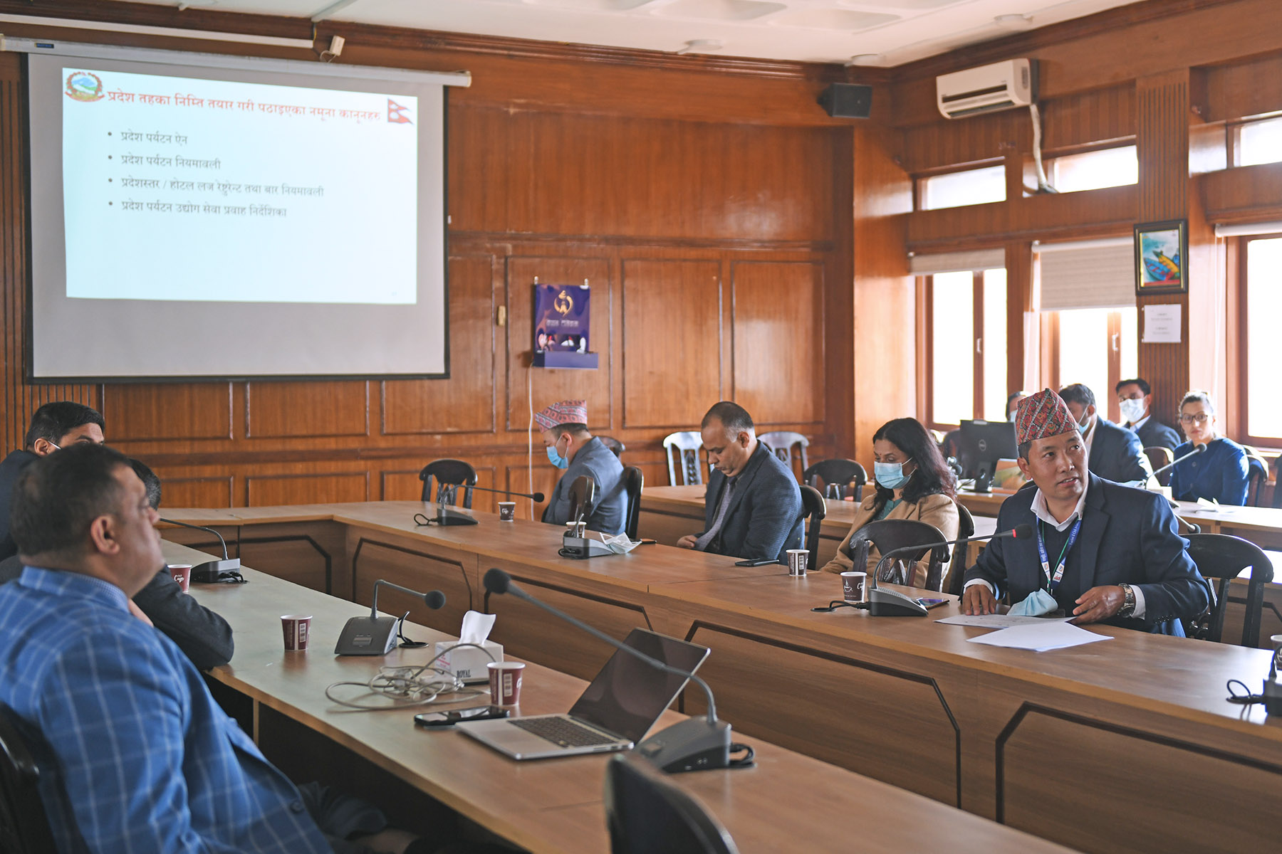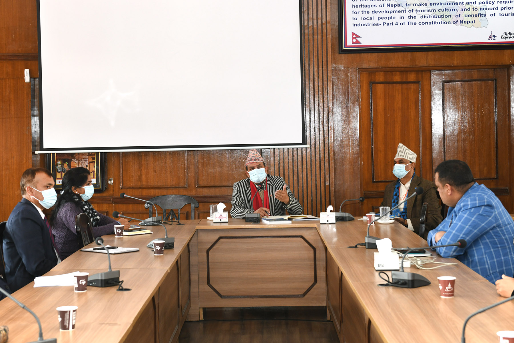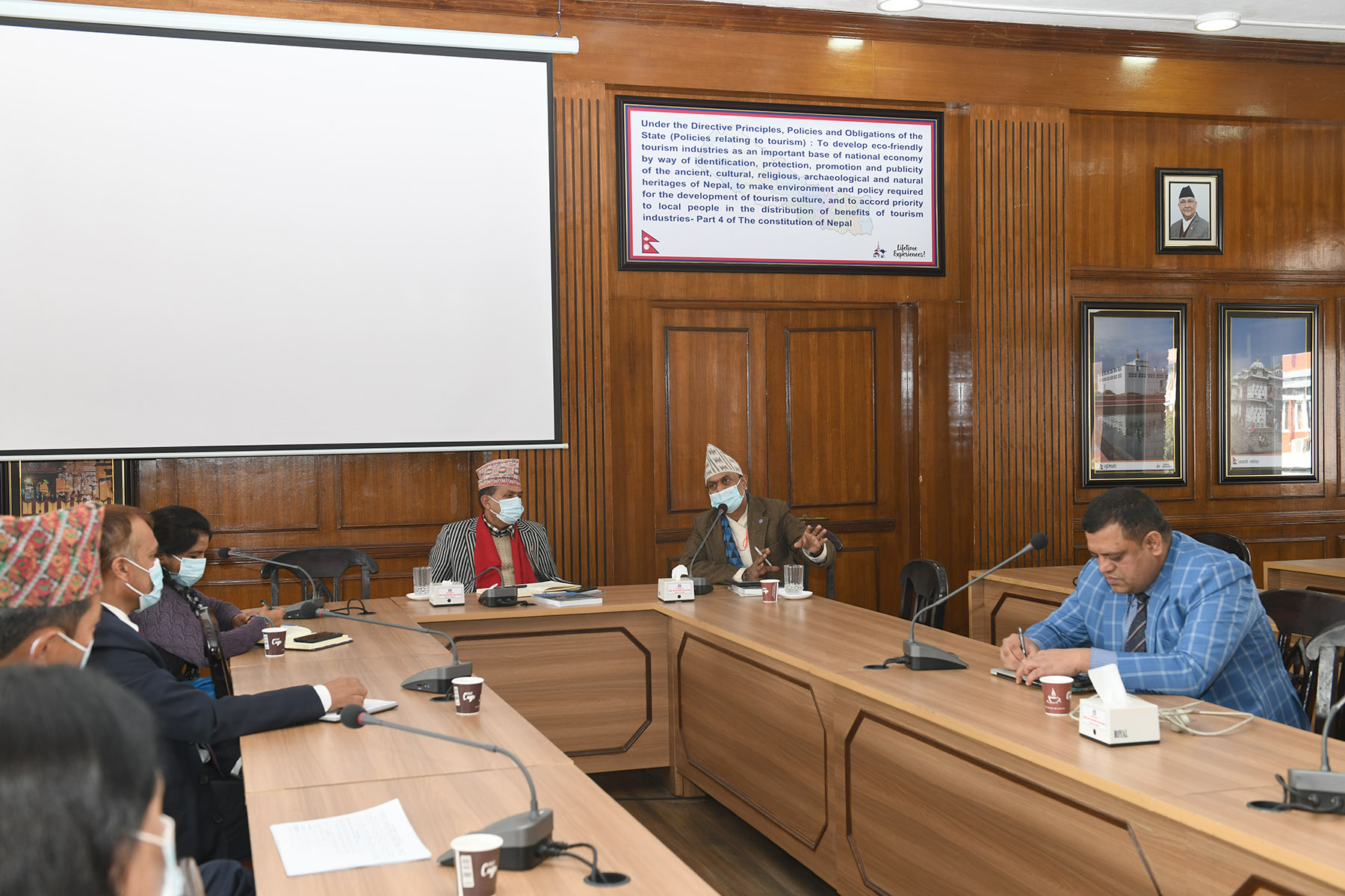माननीय मन्त्री भानु भक्त ढकालज्यू समक्ष पर्यटन विभाग एवम् नेपाल पर्यटन बोर्डबाट भएको प्रस्तुतीकरण कार्यक्रमका तस्वीर-(२०७७-०९-१४)