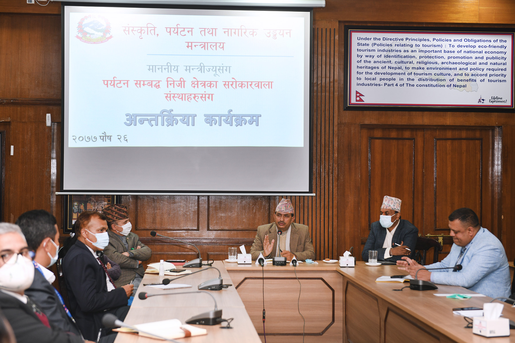 संस्कृति, पर्यटन तथा नागरिक उड्डयन मन्त्रालय माननीय मन्त्रीज्यू, पर्यटन सम्बद्ध क्षेत्रका सरोकारवाला संस्थाहरुसँग अन्तर्क्रिया कार्यक्रमका तस्वीरहरु-२०७७-०९-२६