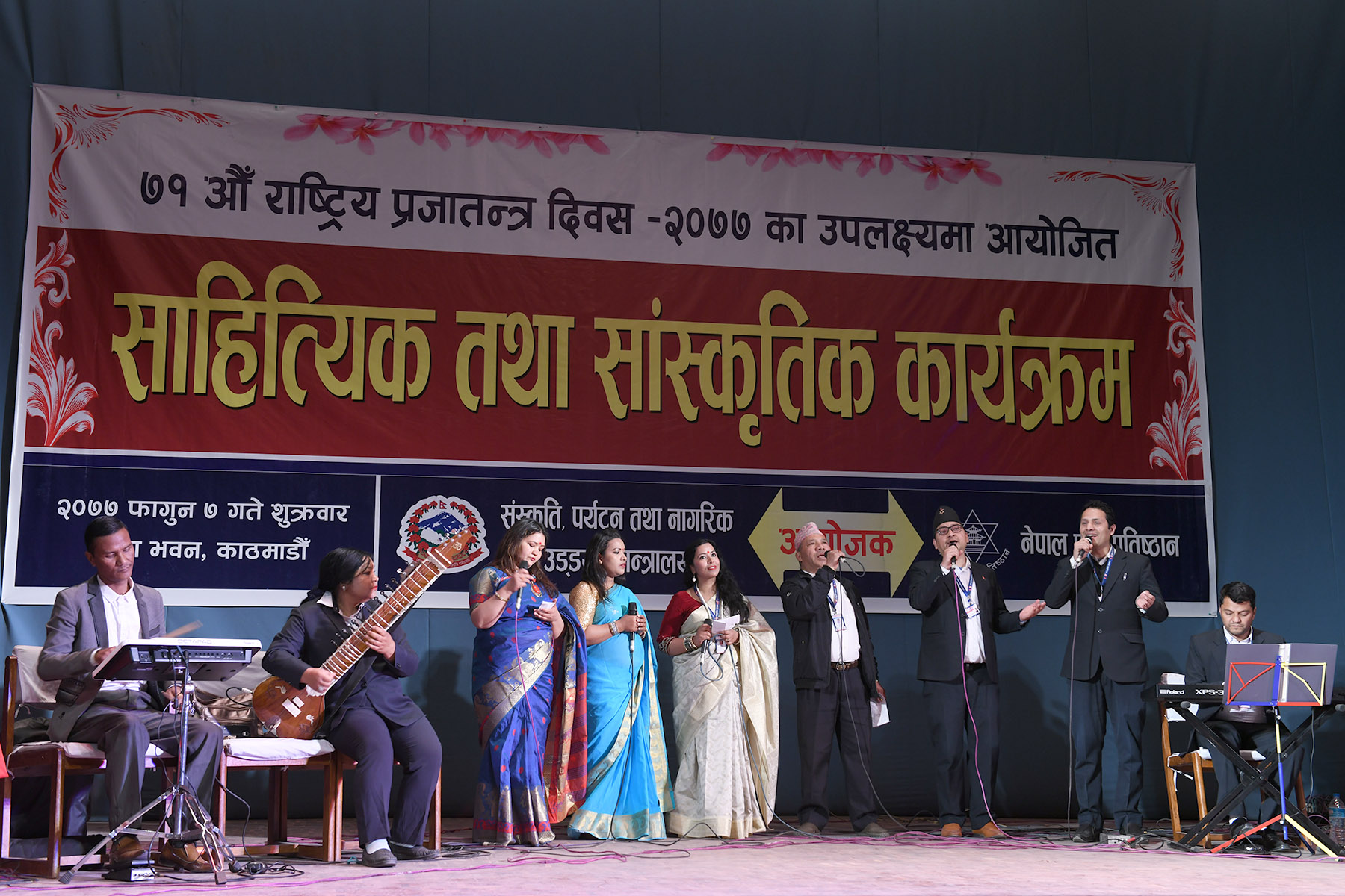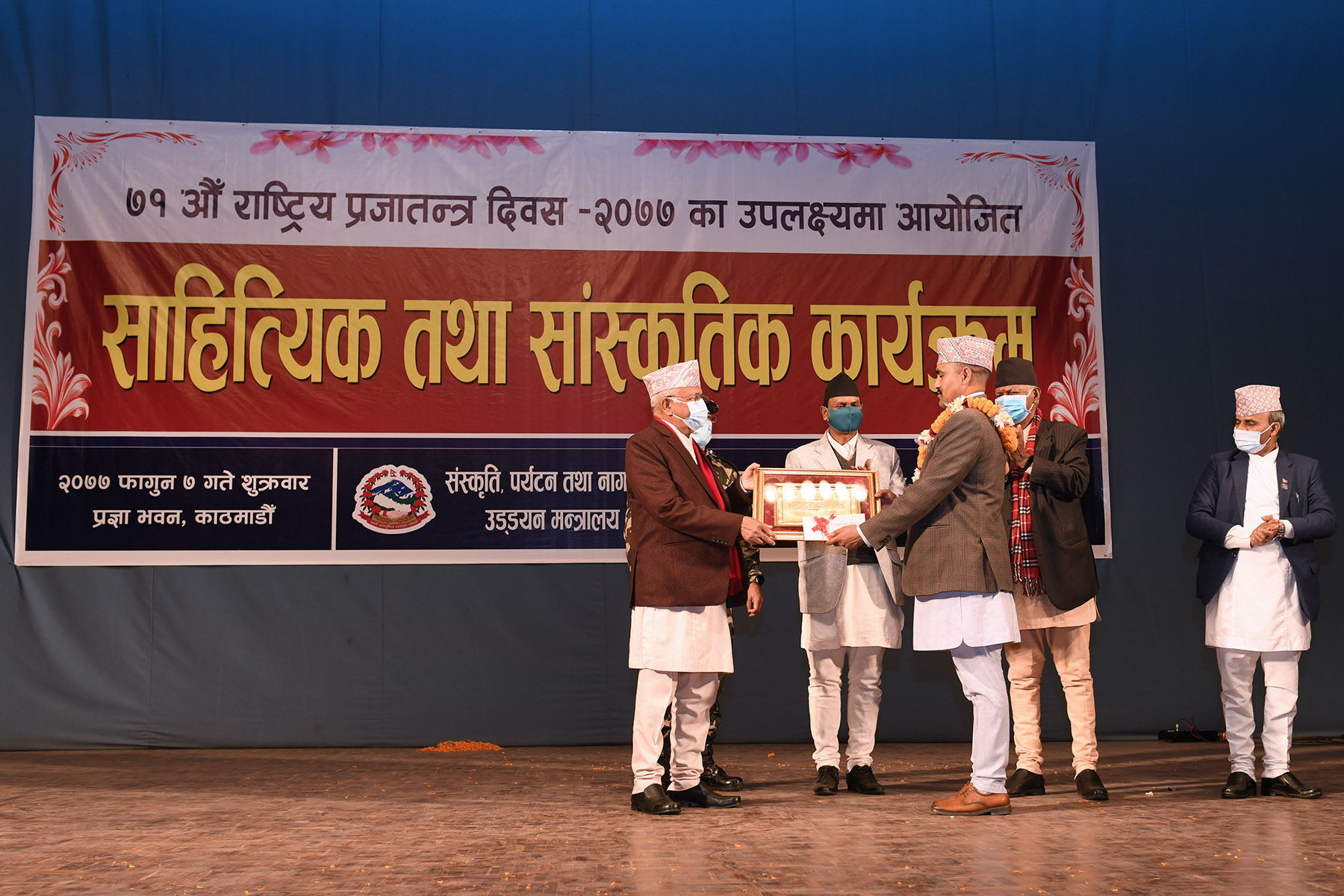 ७१ औं राष्ट्रिय प्रजातन्त्र दिवस २०७७ का उपलक्ष्यमा सम्माननीय प्रधानमन्त्री श्री केपी शर्मा ओलीज्यूको प्रमुख आतिथ्यमा सम्पन्न भएको सांस्कृतिक तथा साहित्यिक कार्यक्रमका तस्वीरहरु- (२०७७ फागुन ०७ गते)