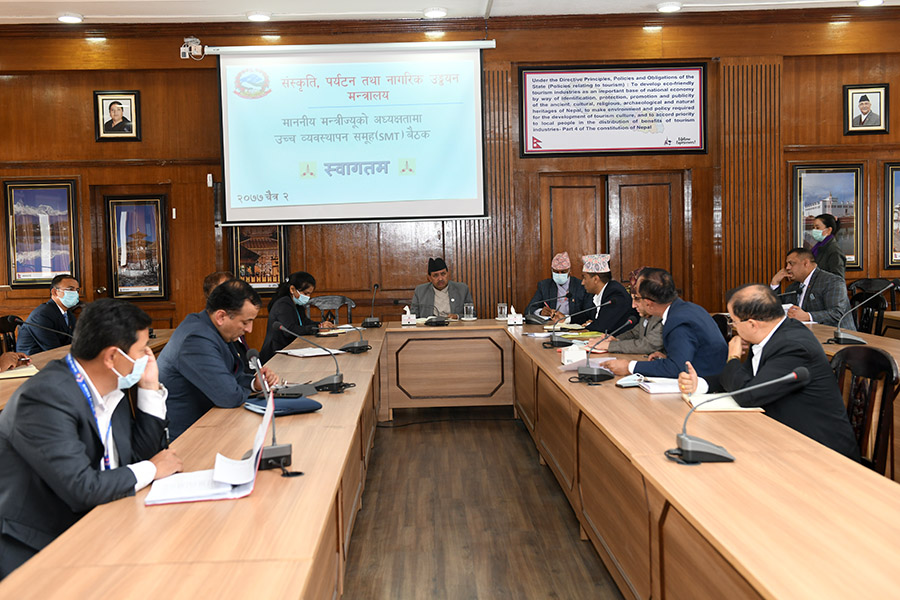 माननीय मन्त्रीज्यूको अध्यक्षतामा बसेको उच्च व्यवस्थापन समूह(SMT) बैठकका तस्वीरहरु-(२०७७ चैत ०२)