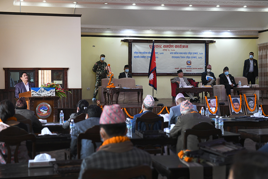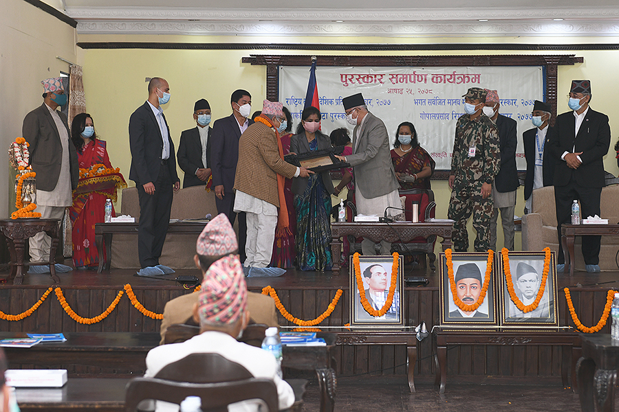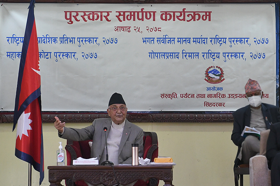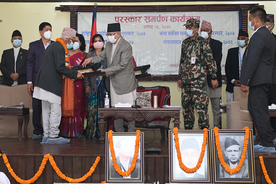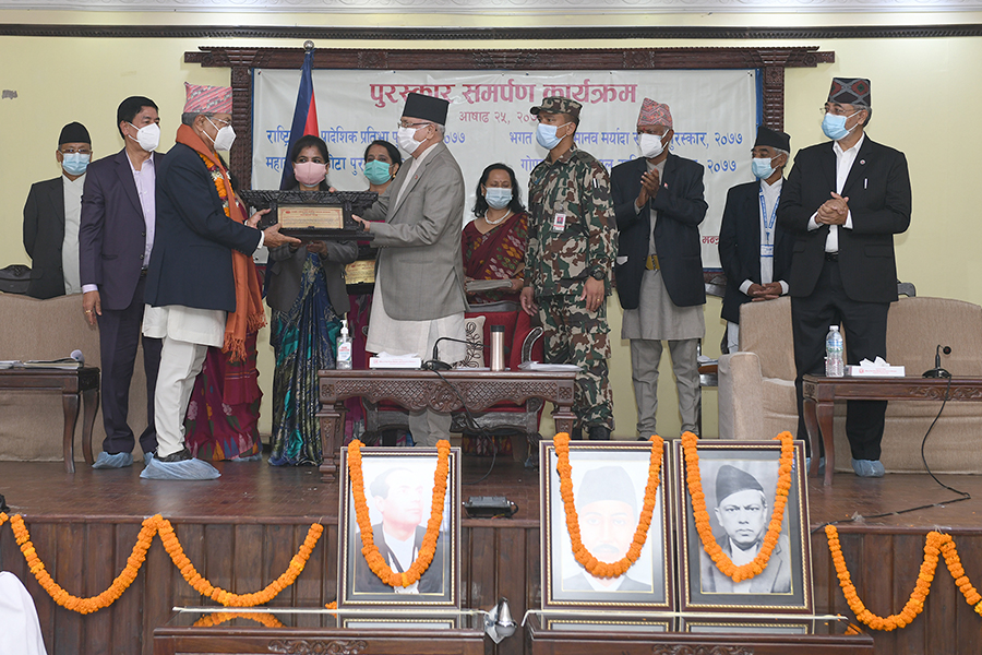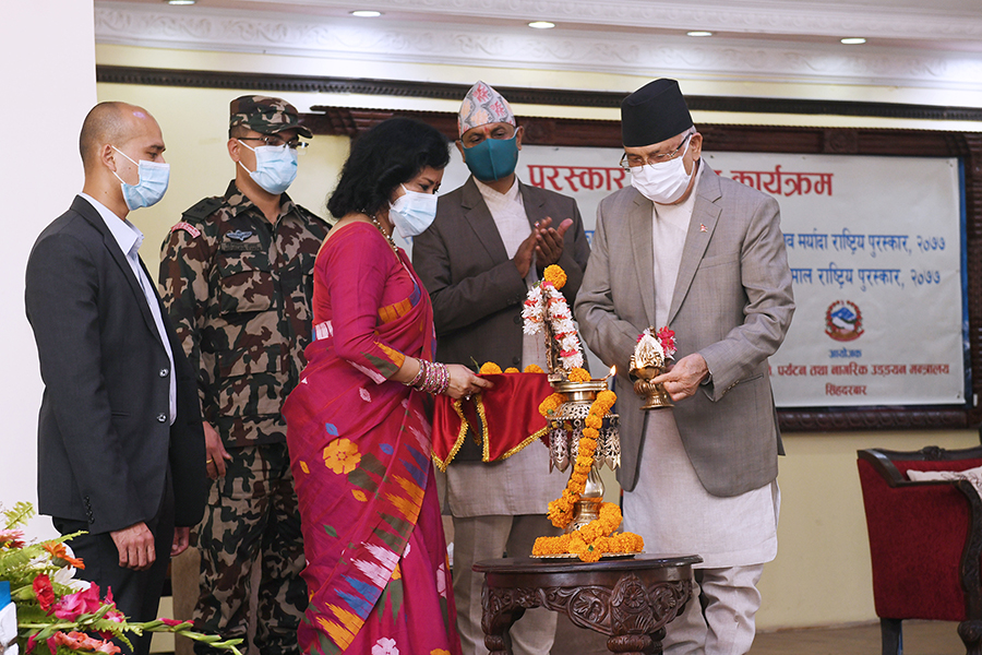 सम्माननीय प्रधानमन्त्री श्री केपी शर्मा ओलीज्यूबाट २०७७ सालको पुरस्कार समर्पण कार्यक्रमका तस्वीरहरु-(२०७८-०३-२५)