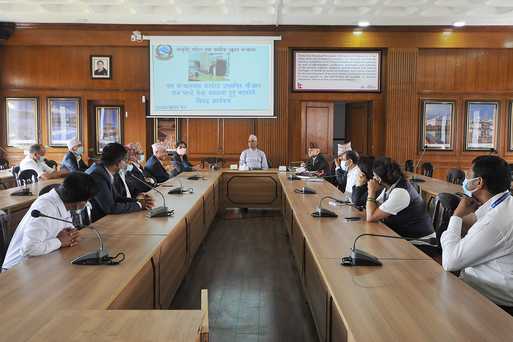 श्रीमान सचिवज्यूबाट सेवा अवकाश हुनु भएका उप सचिव श्री ज्ञान राज पाण्डेज्यूको विदाइ गर्नु भएको कार्यक्रमका तस्वीरहरु-(२०७८।०४।१०)