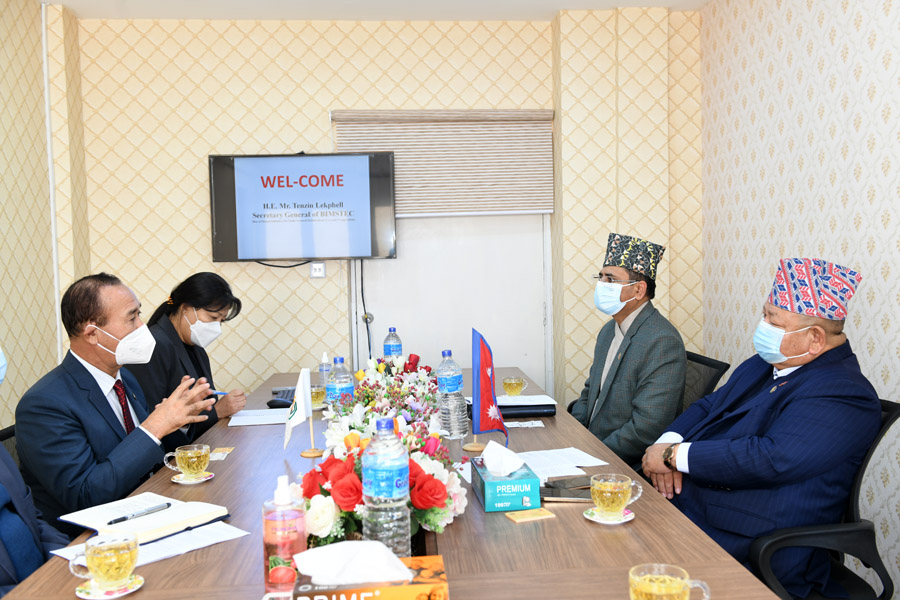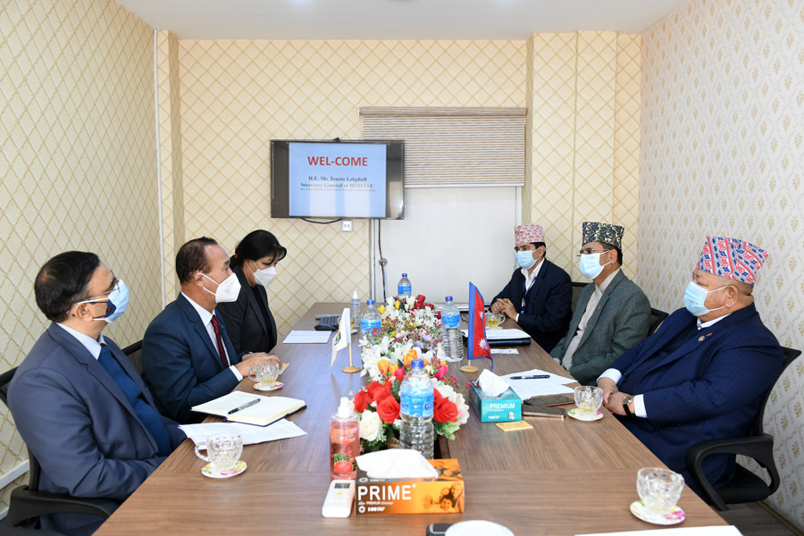 माननीय मन्त्रीज्यूसँग BIMSTEC का महासचिव H.E. Mr.Tenzin Lekphell को शिष्टाचार भेटवार्ताको तस्वीर(२०७८-०९-२०)