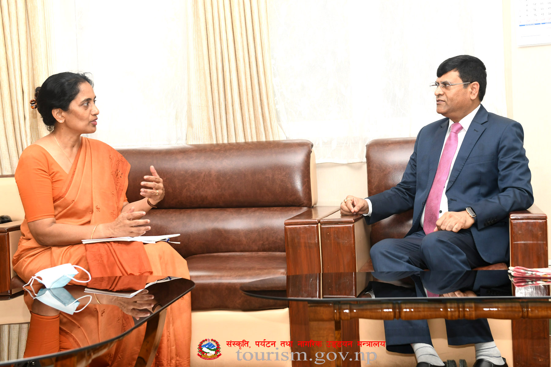 श्रीमान सचिव महेश्वर न्यौपानेज्यूसँग नेपालका लागि श्रीलंकाका महामहिम राजदूत Ms. Himalee Arunatilaka को शिष्टाचार भेटको तस्वीर (२०७९-०३-२०)