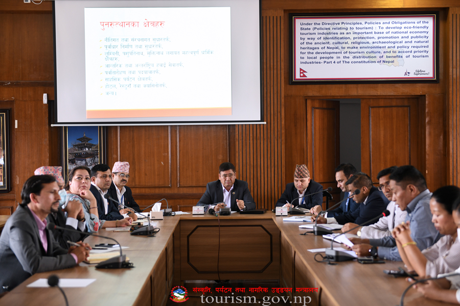 संस्कृति, पर्यटन तथा नागरिक उड्डयन मन्त्रालयको आयोजनामा पर्यटन क्षेत्र पुनरुत्थान सम्बन्धमा भएको अन्तर्क्रिया तथा छलफल कार्यक्रमका तस्वीरहरु-(२०७९-०४-०२)