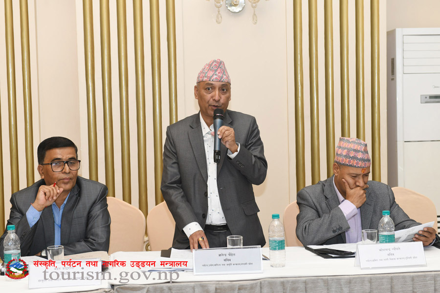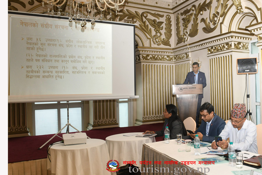 संस्कृति, पर्यटन तथा नागरिक उड्डयन मन्त्री माननीय जीवनराम श्रेष्ठज्यूको अध्यक्षतामा बसेको संघ, प्रदेश र स्थानीय तहको पर्यटनसँग सम्बन्धित बिषयगत समितिको बैठकका तस्वीरहरु(२०७९-०५-११)