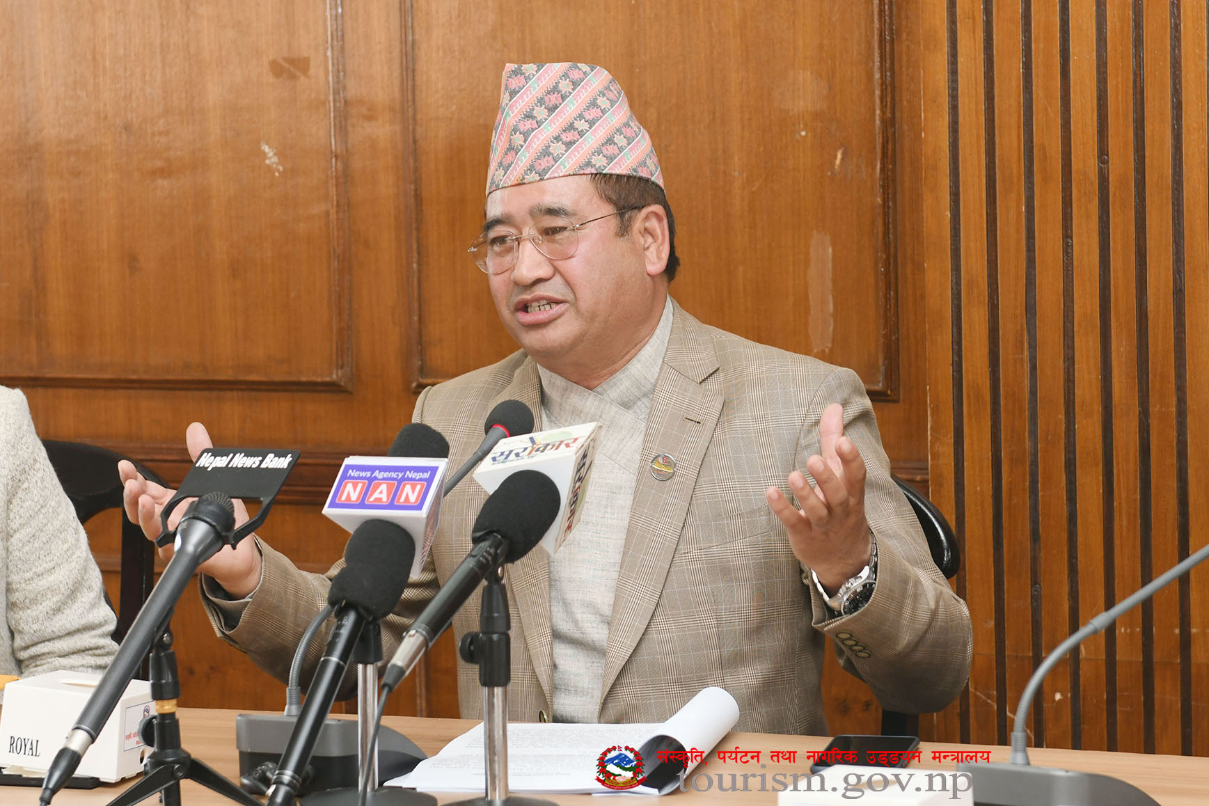 Nepal Tourism Decade 2023-2032 Brief Conceptual Strategic Frame Work को मा. मन्त्रीज्यूबाट पत्रकार सम्मेलन मार्फत सार्वजनिक गर्दाका तस्वीरहरु(२०७९-०९-०८)
