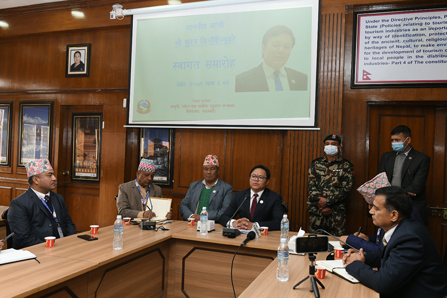 नवनियुक्त संस्कृति, पर्यटन तथा नागरिक उड्डयन मन्त्री माननीय सुदन किराँतीज्यूको स्वागत तथा पद बहाली कार्यक्रमका तस्वीरहरु(२०७९-१०-०३)