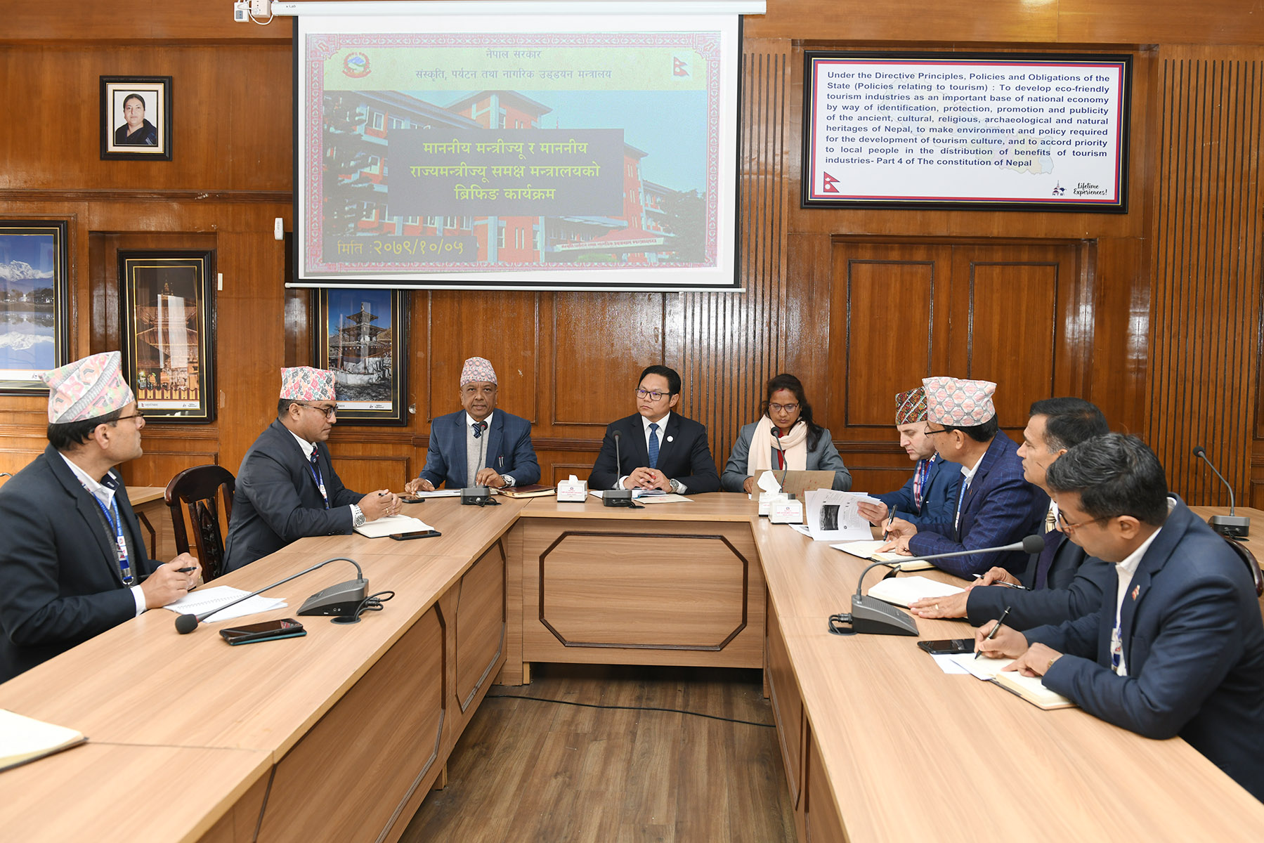 माननीय मन्त्रीज्यू र माननीय राज्यमन्त्रीज्यू समक्ष प्रस्तुत मन्त्रालयको ब्रिफिङ कार्यक्रमका तस्वीरहरु(२०७९-१०-०५)