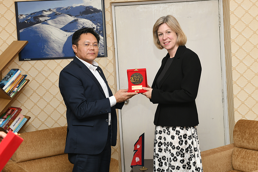 संस्कृति, पर्यटन तथा नागरिक उड्डयन मन्त्री माननीय सुदन किरातीसँग नेपालका लागि बेलायती राजदूत H.E. Ms. Nicola Pollitt को शिष्टाचार भेटका तस्वीरहरु (२०८०-०२-०५)
