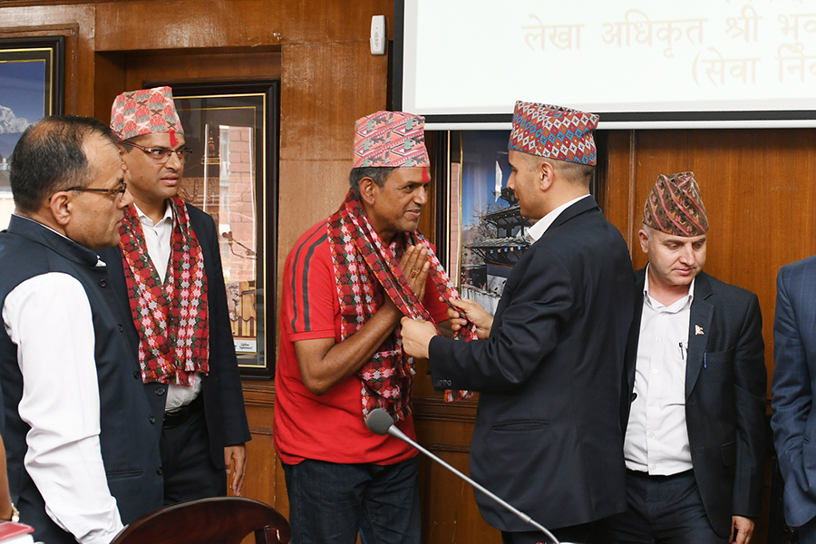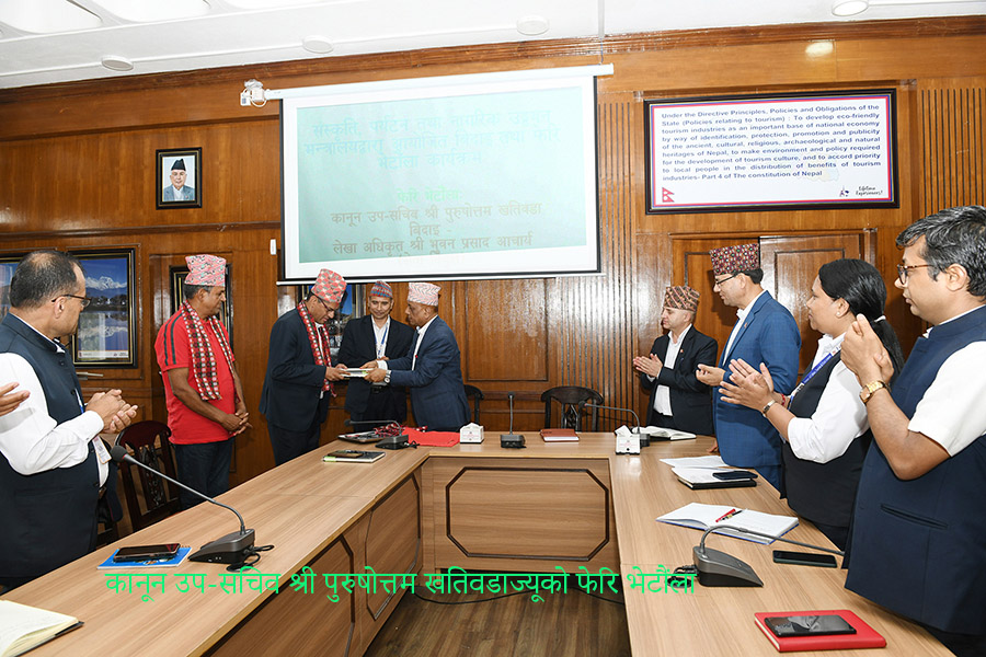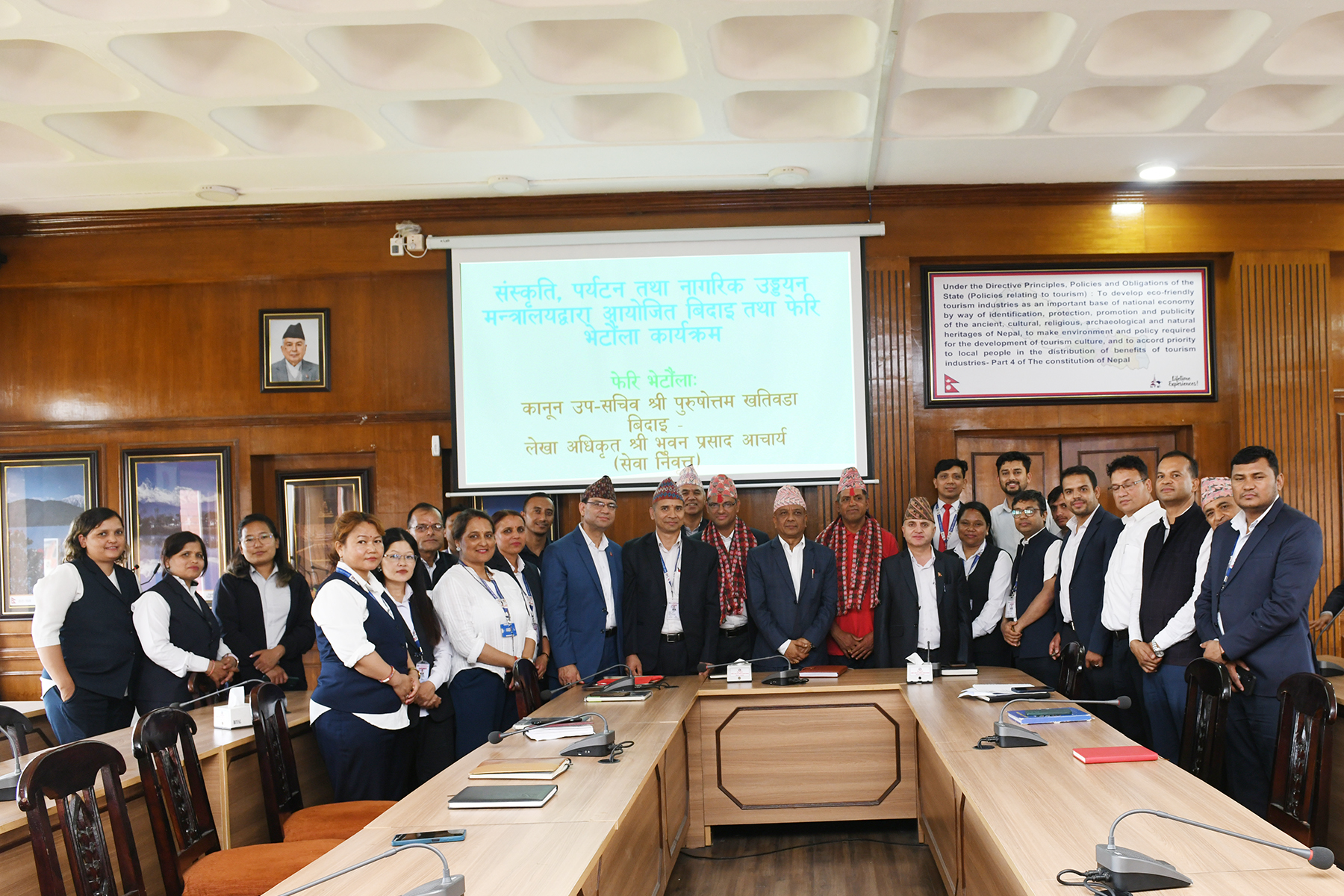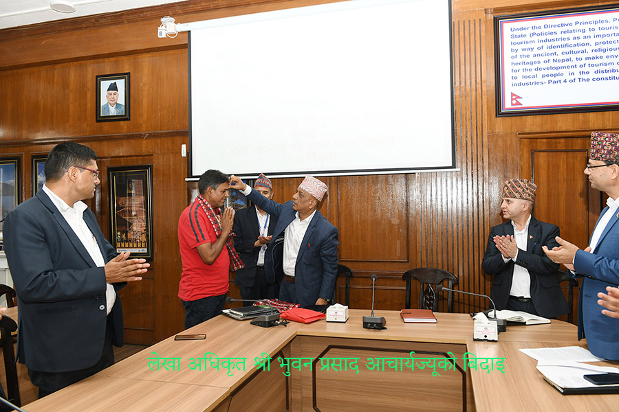 संस्कृति, पर्यटन तथा नागरिक उड्डयन मन्त्राकलयद्धारा आयोजित बिदाइ (लेखा अधिकृत श्री भुवन प्र. आचार्यज्यूको) तथा फेरी भेटौला (कानून उप-सचिव श्री पुरुषोत्तम खतिवडाज्यूको) कार्यक्रमका तस्वीरहरु-(२०८०-०३-१०)