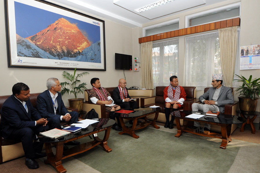 सस्कृति, पर्यटन तथा नागरिक उड्डयन मन्त्री माननीय बद्री प्रसाद पाण्डेज्यू र श्रीमान सचिव डा. गणेशप्रसाद पाण्डेयज्यूसँग भुटानका गृह सचिव H.E. Mr.Sonam Wangyel को शिष्टाचार भेटका तस्वीरहरु।(२०८१-०७-०५)।