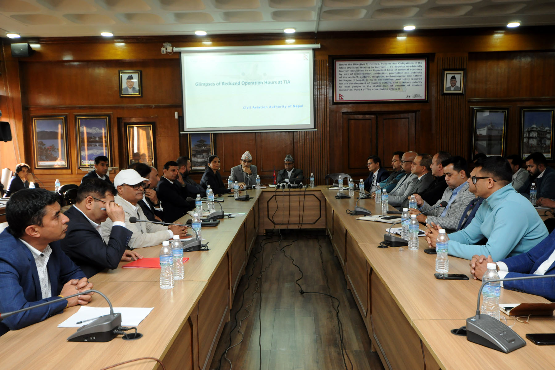 सस्कृति, पर्यटन तथा नागरिक उड्डयन मन्त्री माननीय बद्री प्रसाद पाण्डेज्यूको अध्यक्षतामा नेपालमा हवाई भाडा बृद्धि सम्बन्धमा सरोकारवाला हवाई सेवा प्रदायकहरुसँगको छलफल कार्यक्रमका तस्वीरहरु(२०८१।०८।०५)
