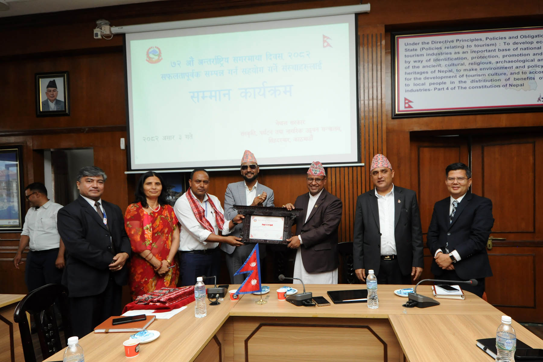 ७२ औं अन्तर्राष्ट्रिय सगरमाथा दिवस, २०८२ सफलतापूर्वक सम्पन्न गर्न सहयोग गर्ने संस्थाहरुको सम्मान कार्यक्रमका तस्वीरहरु (२०८२।०३।०३)