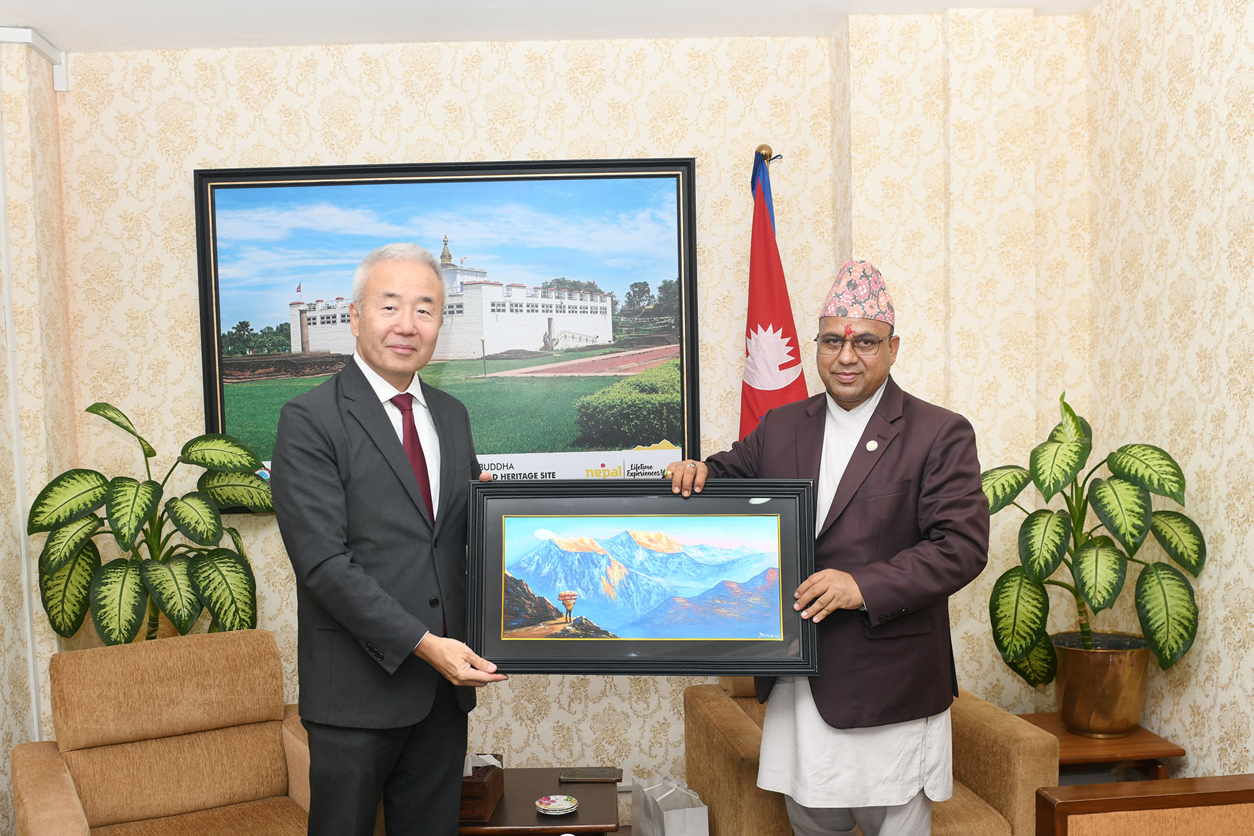 संस्कृति, पर्यटन तथा नागरिक उड्डयन मन्त्री माननीय बद्री प्रसाद पाण्डेसँग नेपालका लागि जापानका राजदूत H.E. Mr. Maeda Toru को शिष्टाचार भेटका तस्वीरहरु (२०८२।०४।१९)