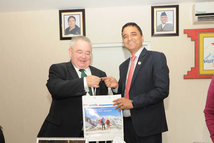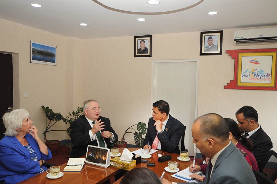 Minister for Culture, Tourism and Civil Aviation Hon. Mr. Yogesh Kumar Bhattarai during the meeting with The Speaker of Parliament of Ireland Rt. Hon. Sean O Fearghail leading a five member parliamentary delegation(11 September 2019)