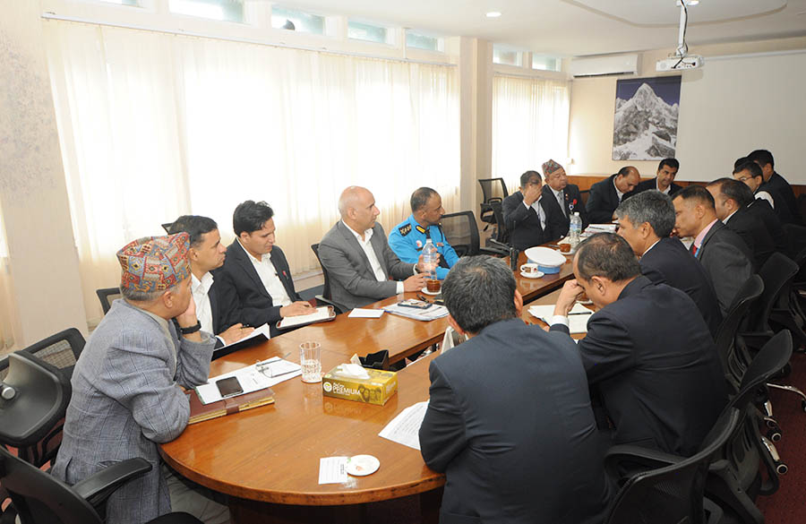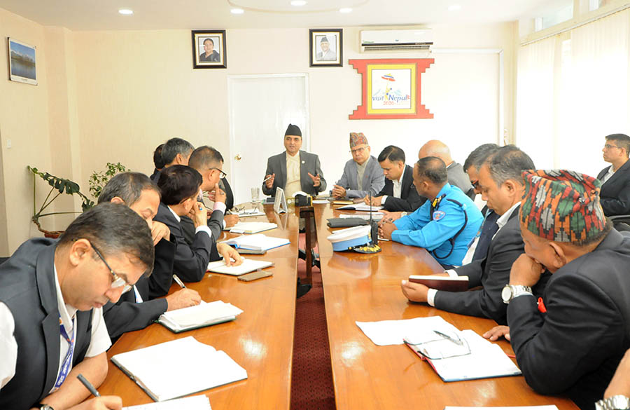 माननीय संस्कृति, पर्यटन तथा नागरिक उड्डयन मन्त्रीज्यूको उपस्थितिमा आसन्न भ्रमण बर्ष २०२० लार्इ सफल पार्ने सन्दर्भमा उपत्यकाको भौतिक पूर्वाधार र यातायात व्यवस्थापन लगायत बिषय सम्बन्धी बैठकका - तस्वीर(२०७६-५-२९)