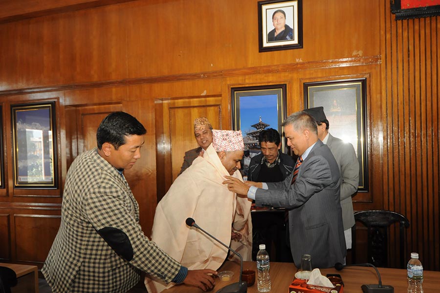 माननीय संस्कृति, पर्यटन तथा नागरिक उड्डयन मन्त्री श्री योगेश भट्टरार्इज्यूबाट मन्त्रालयको सभाकक्षमा सेवा निवृत्त उप सचिव श्री हरिकृष्ण ज्ञवालीज्यूको विदार्इ कार्यक्रमका तस्वीरहरु-(२०७६।७।२९)