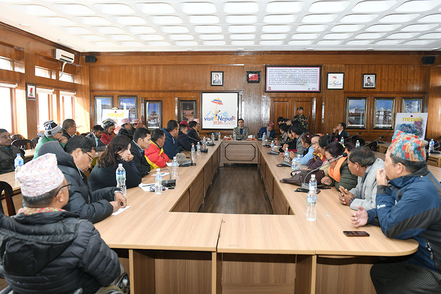 नेपाल भ्रमण बर्ष २०२० का सन्दर्भमा नेपाल भ्रमण बर्ष २०२० को सन्दर्भमा नेपाल जनजाति महासंघ आवद्ध संघ संस्थाहरुसँग अन्तरक्रिया कार्यक्रमका- तस्वीर (२०७६-०९-१३)