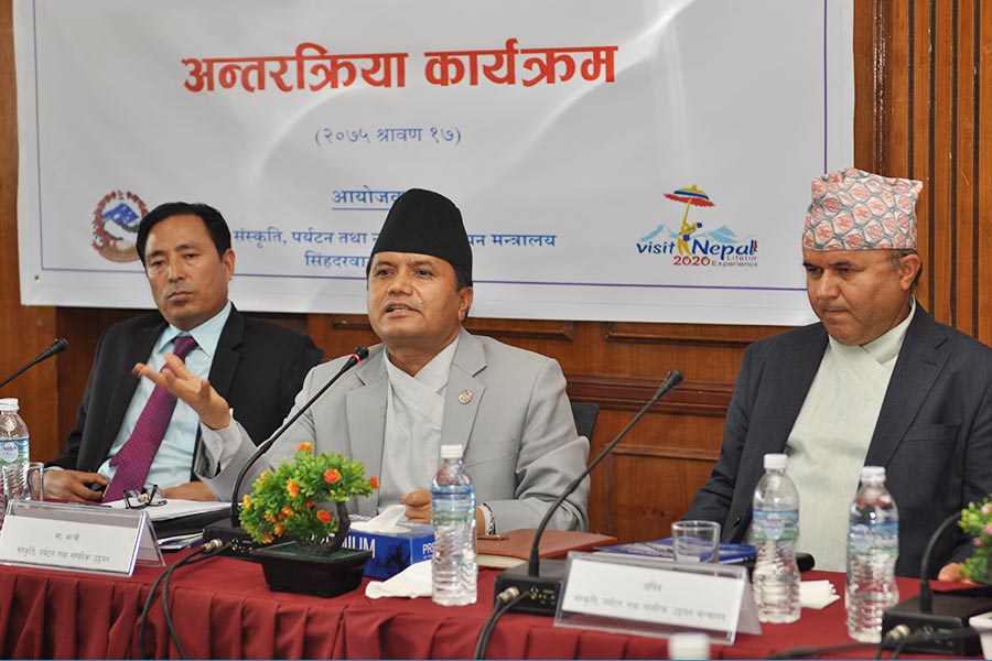 संस्कृति, पर्यटन तथा नागरिक उड्डयन मन्त्रालयको आयोजनामा प्रदेश सरकारका उद्योग, पर्यटन, वन तथा वातावरण मन्त्रालयका मा. मन्त्रीज्यूहरुसँग पर्यटन क्षेत्रको भावी कार्यदिशा सम्बन्धी अन्तरक्रिया कार्यक्रमको- तस्वीर