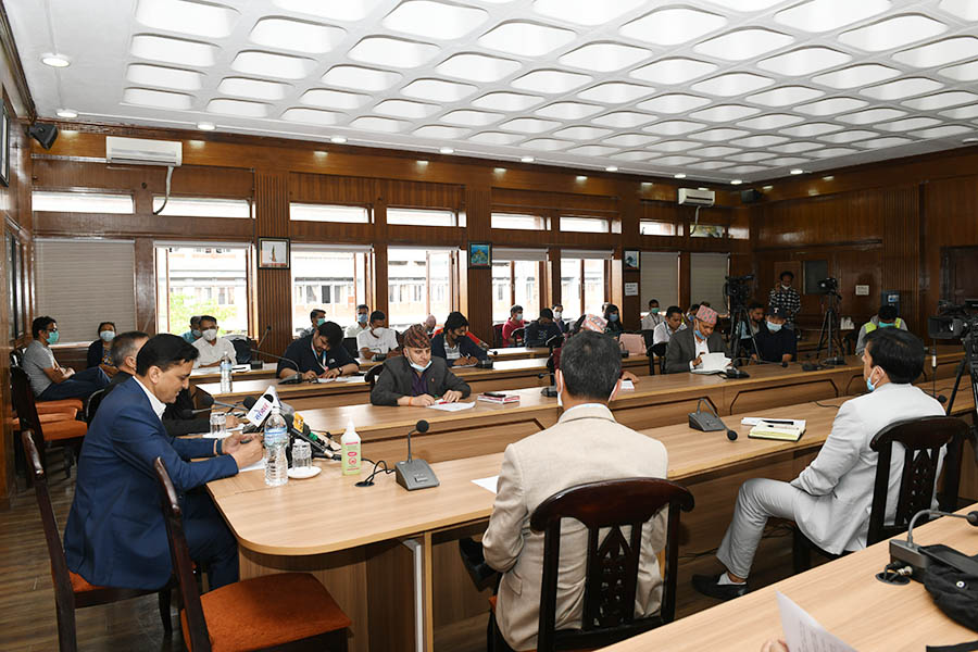 कोभिड-१९ बाट सिर्जित लकडाउनको अवधिमा मन्त्रालयद्धारा सम्पादित प्रमुख कार्यहरु सम्बन्धमा आयोजित प्रत्रकार सम्मेलनको तस्वीर-(०७७-३-१९ )