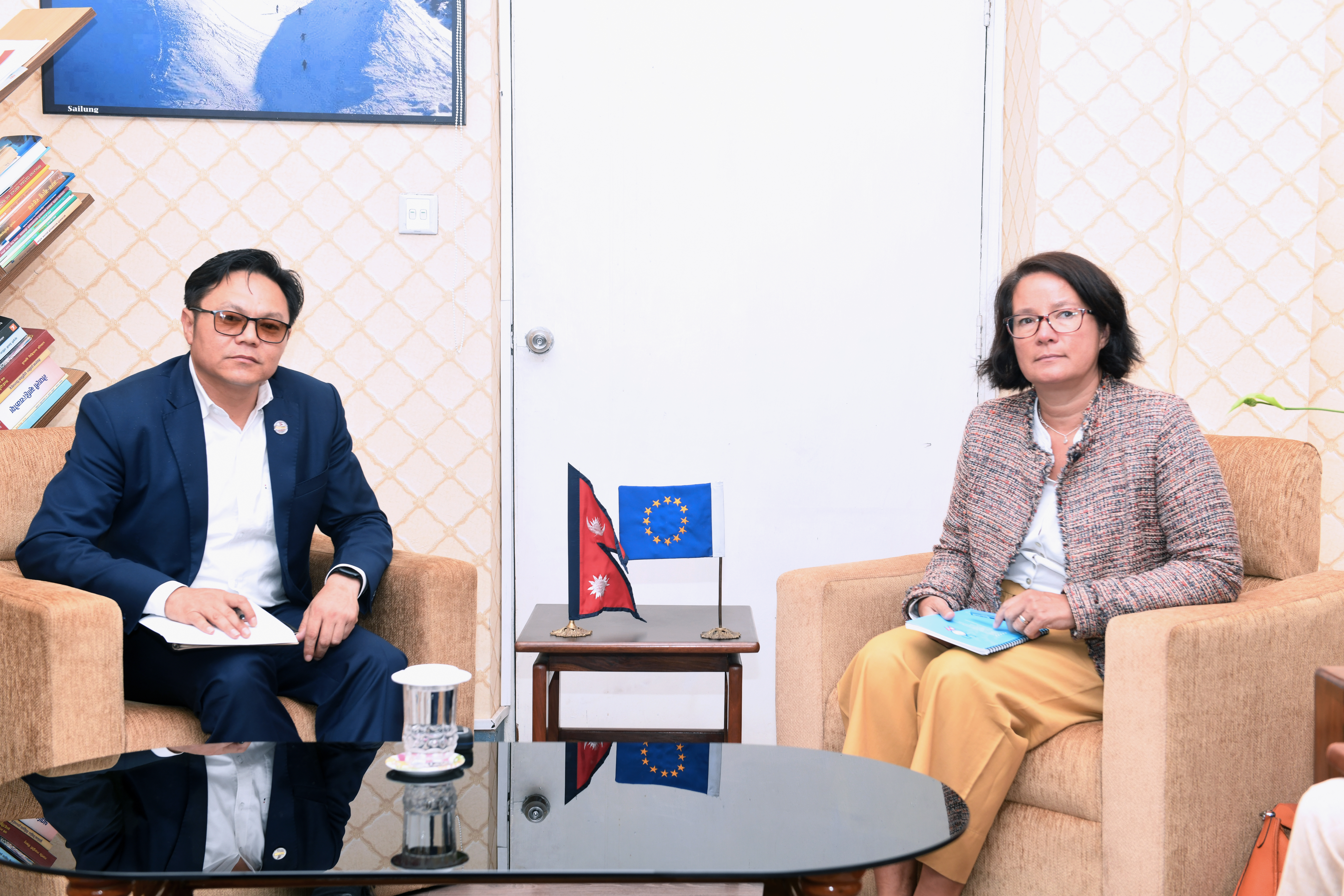 संस्कृति, पर्यटन तथा नागरिक उड्डयन मन्त्री माननीय सुदन किरातीसँग नेपालका लागि ईयू प्रतिनिधिमण्डलका राजदूत H.E. Ms. Nona Deprez को शिष्टाचार भेटका तस्वीरहरु (२०८०-०४-०१)