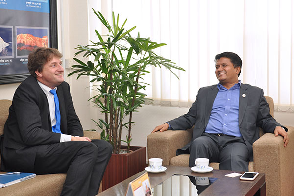 माननीय मन्त्री श्री रविन्द्र अधिकारीसँग DFID का प्रमुख Dr. Rurik Marsden को शिष्टाचार भेट