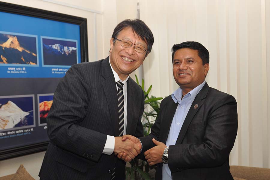 माननीय मन्त्री श्री रविन्द्र अधिकारीसँग जापानका राजदूत H.E. Mr. Masamichi Saigo को शिष्टाचार भेट-तस्वीर
