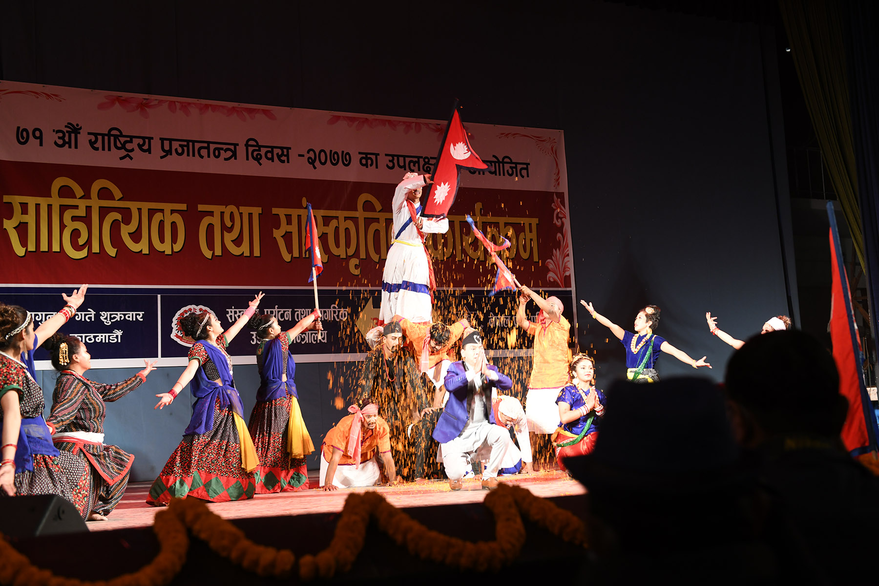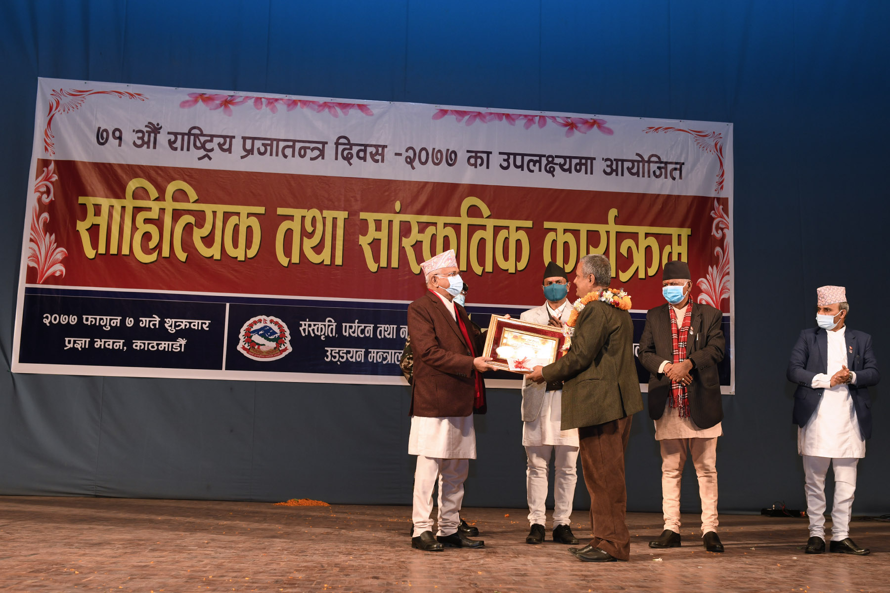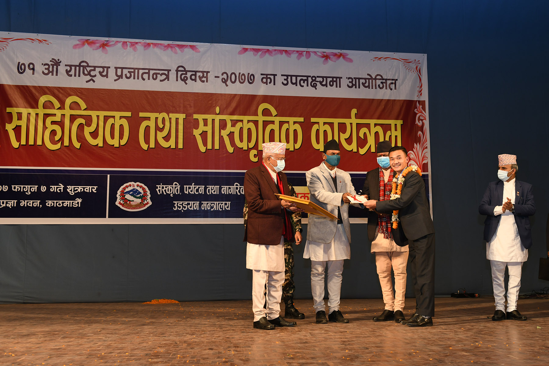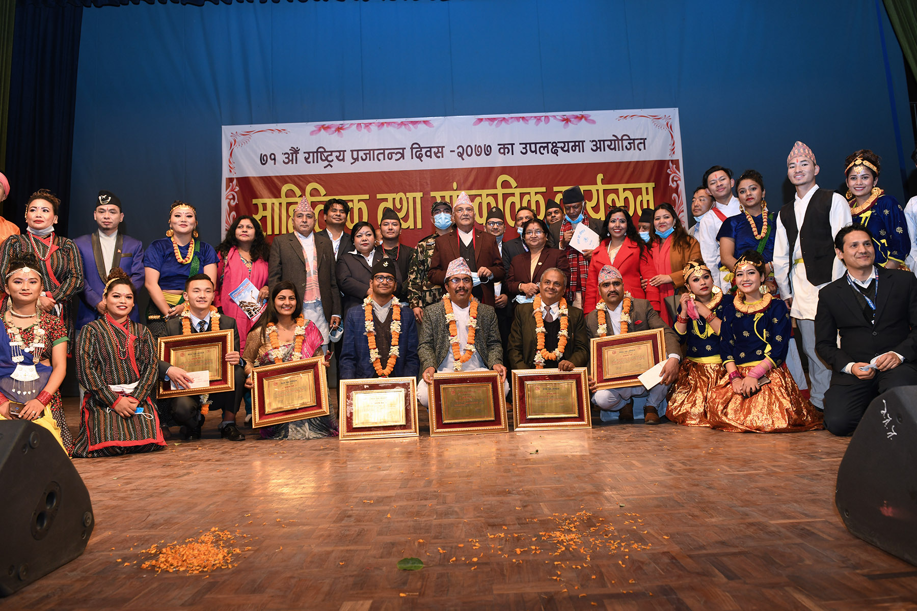 ७१ औं राष्ट्रिय प्रजातन्त्र दिवस २०७७ का उपलक्ष्यमा सम्माननीय प्रधानमन्त्री श्री केपी शर्मा ओलीज्यूको प्रमुख आतिथ्यमा सम्पन्न भएको सांस्कृतिक तथा साहित्यिक कार्यक्रमका तस्वीरहरु- (२०७७ फागुन ०७ गते)