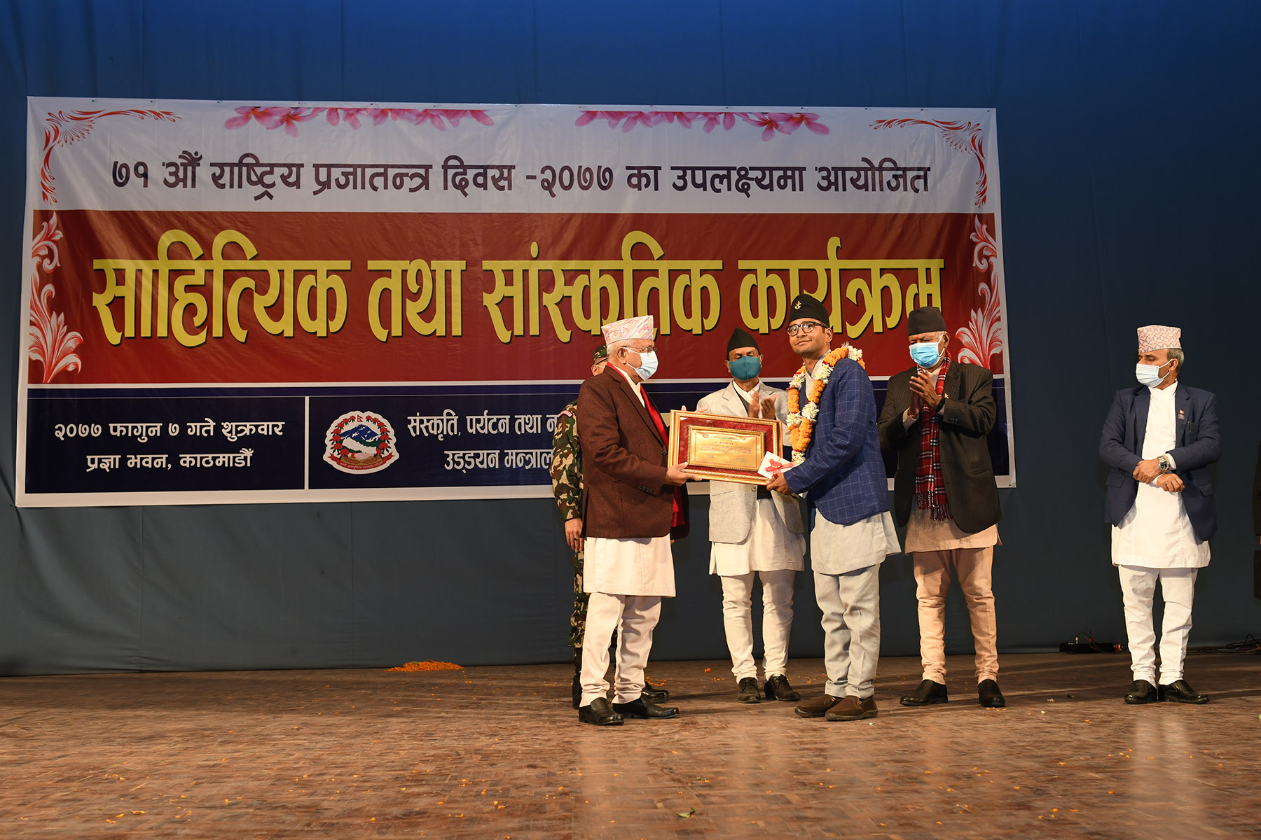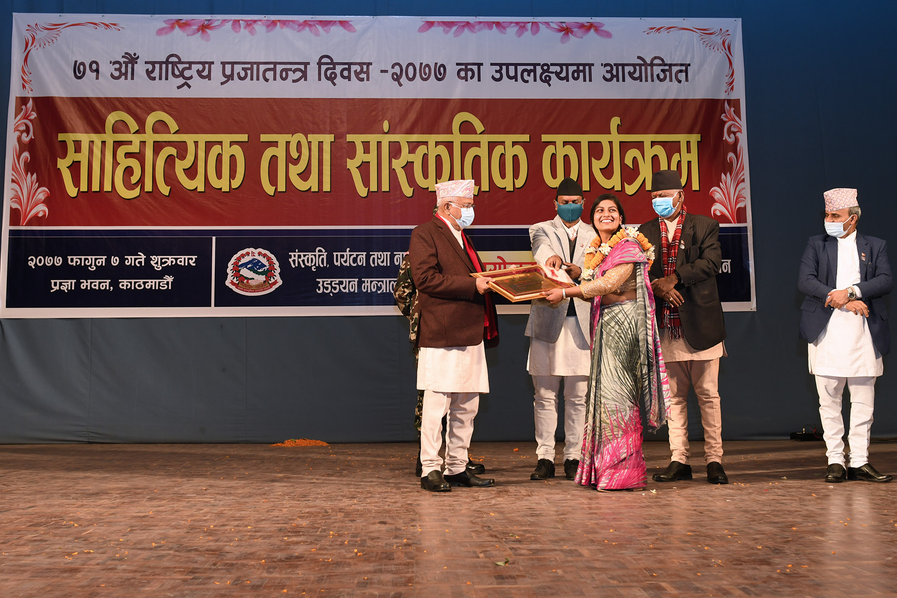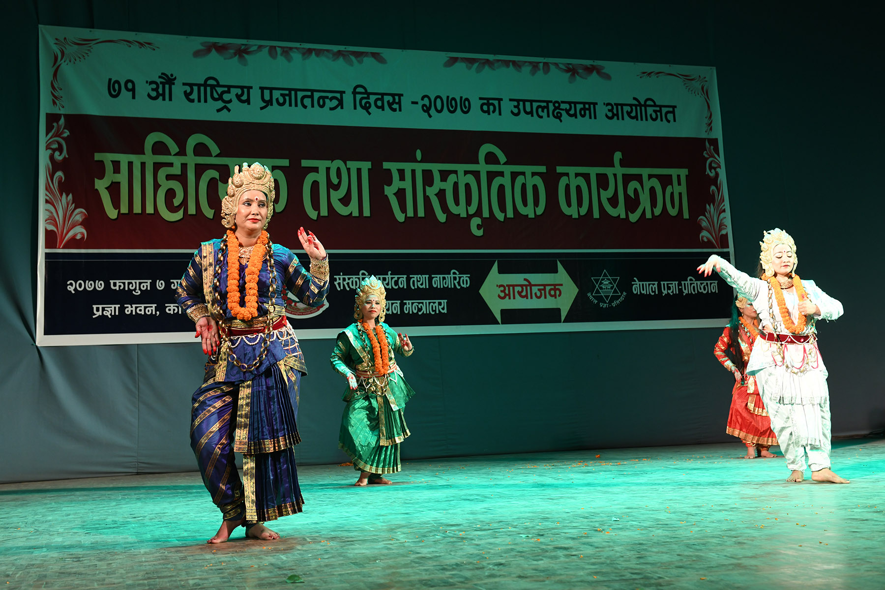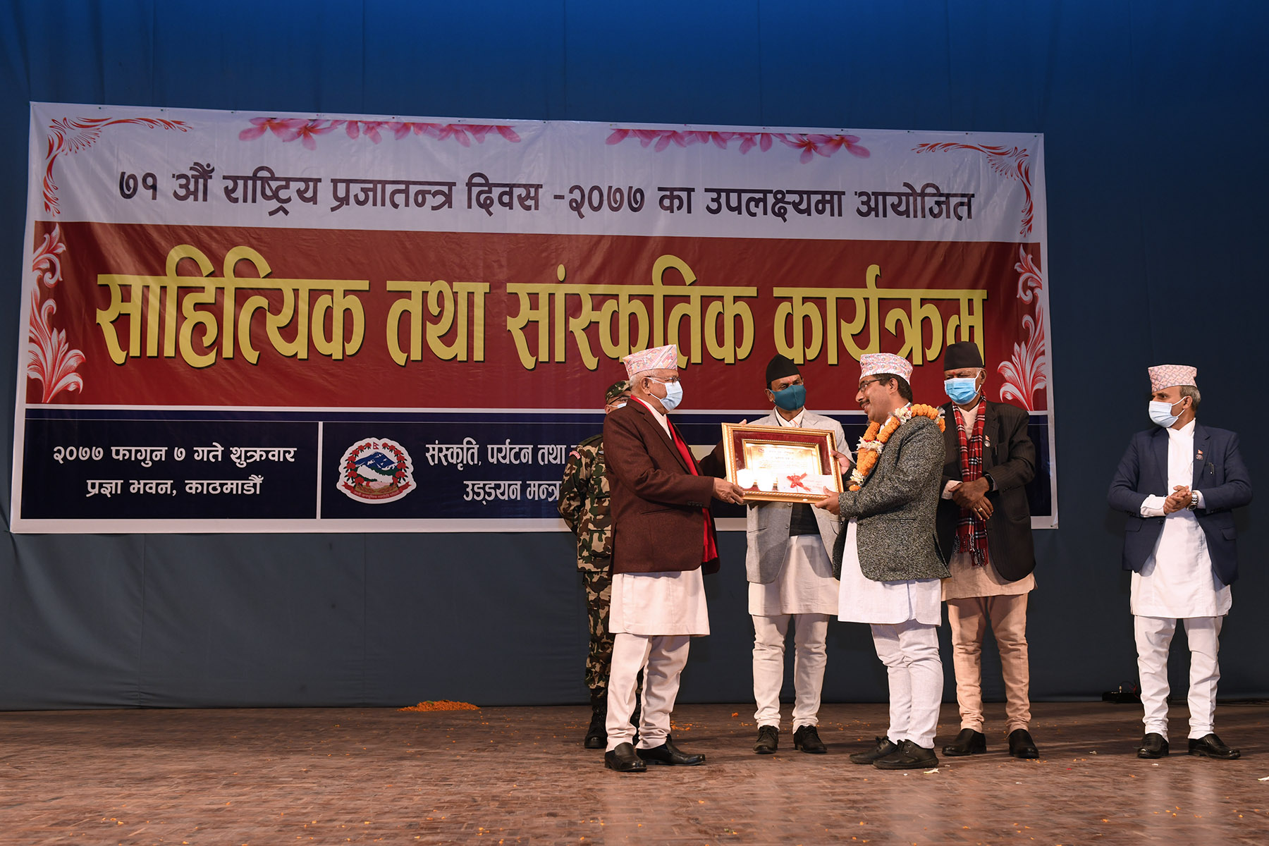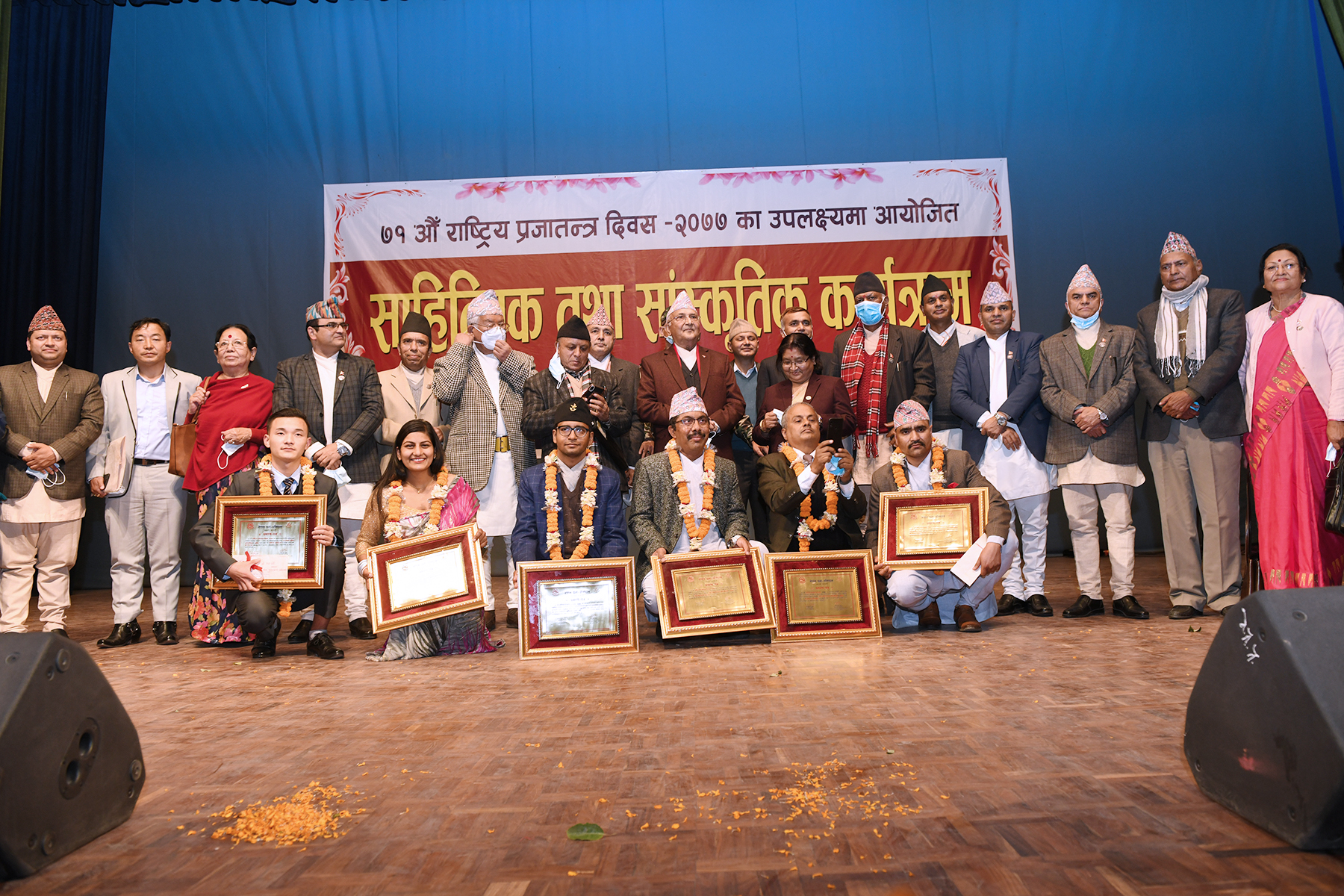 ७१ औं राष्ट्रिय प्रजातन्त्र दिवस २०७७ का उपलक्ष्यमा सम्माननीय प्रधानमन्त्री श्री केपी शर्मा ओलीज्यूको प्रमुख आतिथ्यमा सम्पन्न भएको सांस्कृतिक तथा साहित्यिक कार्यक्रमका तस्वीरहरु- (२०७७ फागुन ०७ गते)