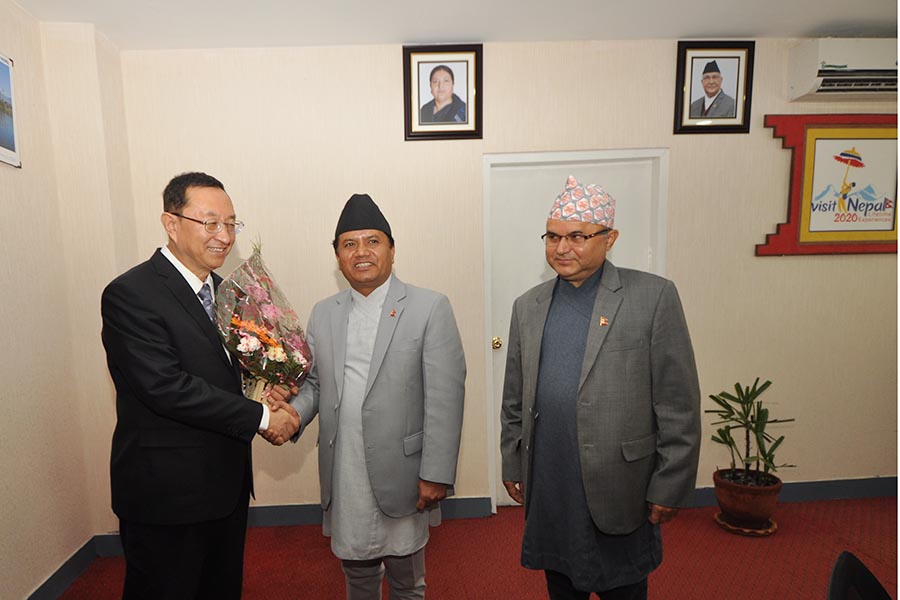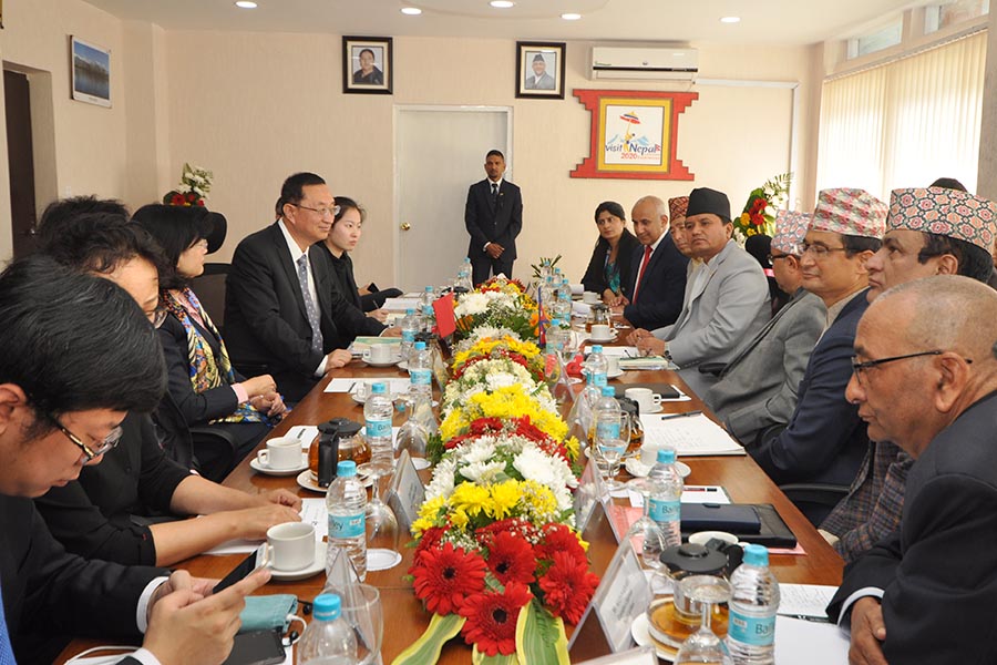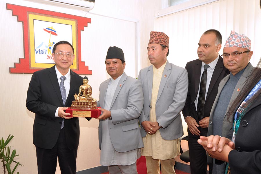 जनवादी गणतन्त्र चीनका संस्कृति तथा पर्यटन मन्त्री महामहिम श्री लुओ सुगाङज्यू सहितको चिनिया टोली र संस्कृति पर्यटन तथा नागरिक उड्डयन मन्त्री मा. श्री रविन्द्र अधिकारीज्यू विच भएको भेटघाट कार्यक्रममा लिइएका तस्वीरहरु