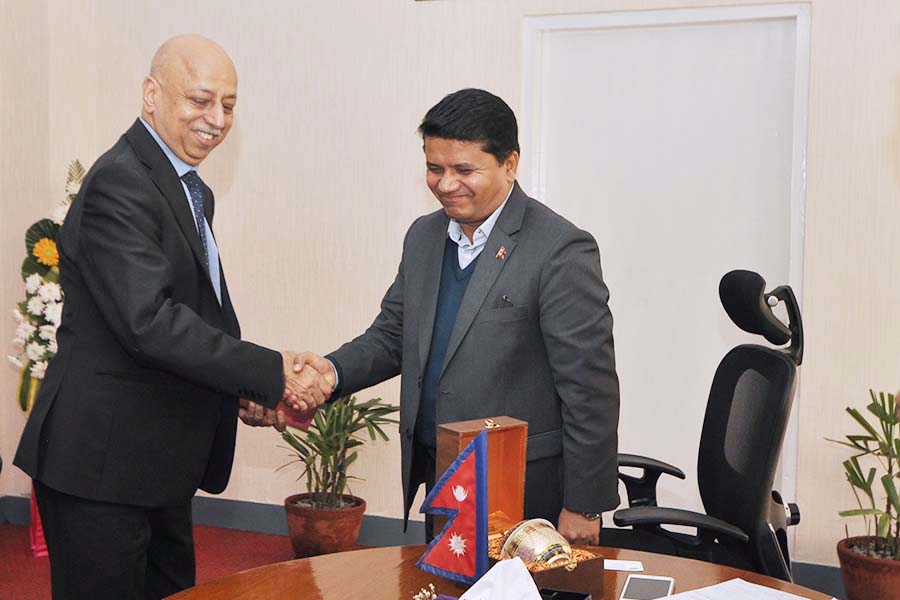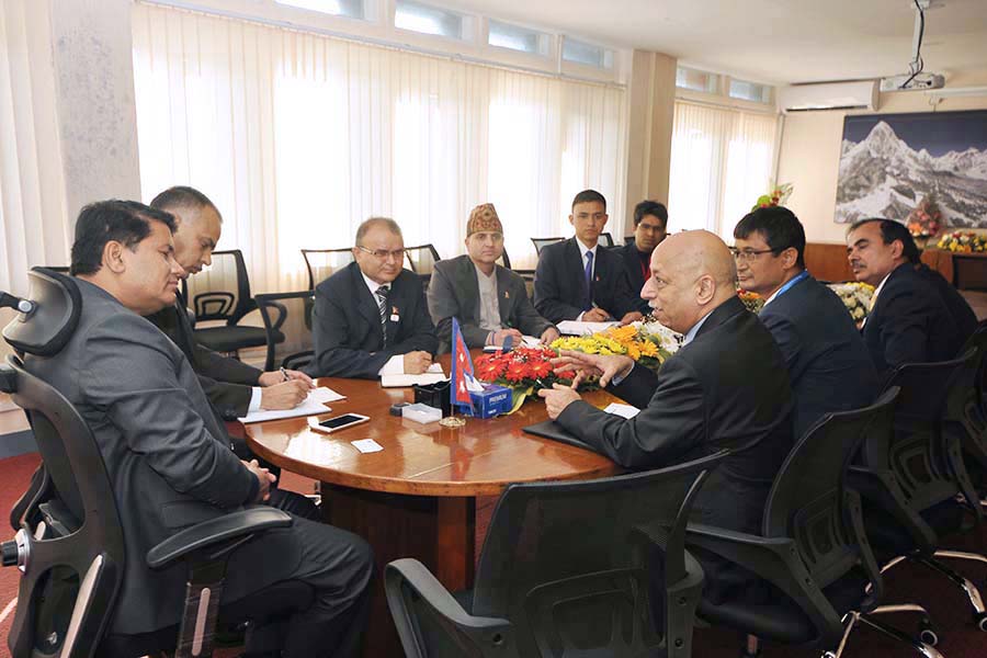ICAO Regional Director Mr. Arun Mishra meeting with Hon. Minister, Rabindra Adhikari at Singhadurbar