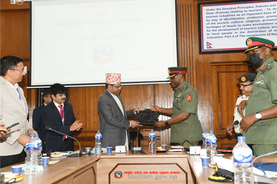 संस्कृति, पर्यटन तथा नागरिक उड्डयन मन्त्रालयलमा “National Defence College(NDC)-30”, Nigeria को प्रतिनिधि मण्डलसँग भएको अन्तरक्रिया कार्यक्रमका तस्वीरहरु(२०७९-०२-२३)
