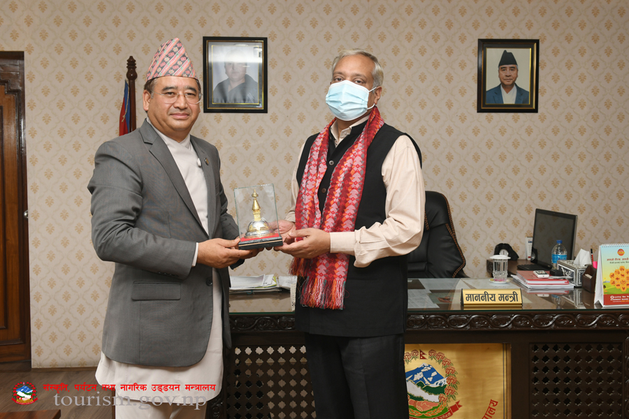 संस्कृति, पर्यटन तथा नागरिक उड्डयन मन्त्री माननीय जीवनराम श्रेष्ठज्यूसँग नेपालका लागि भारतका महामहिम राजदूत Shri Naveen Srivastava को शिष्टाचार भेटका तस्वीरहरु(२०७९-०४-०६)